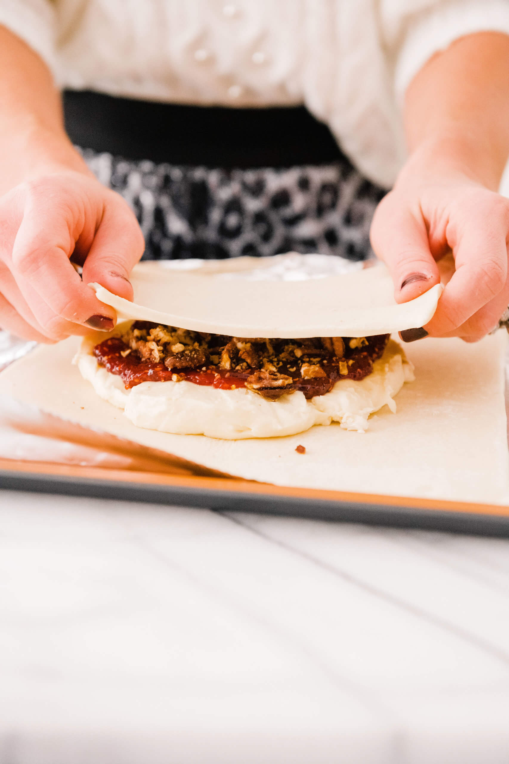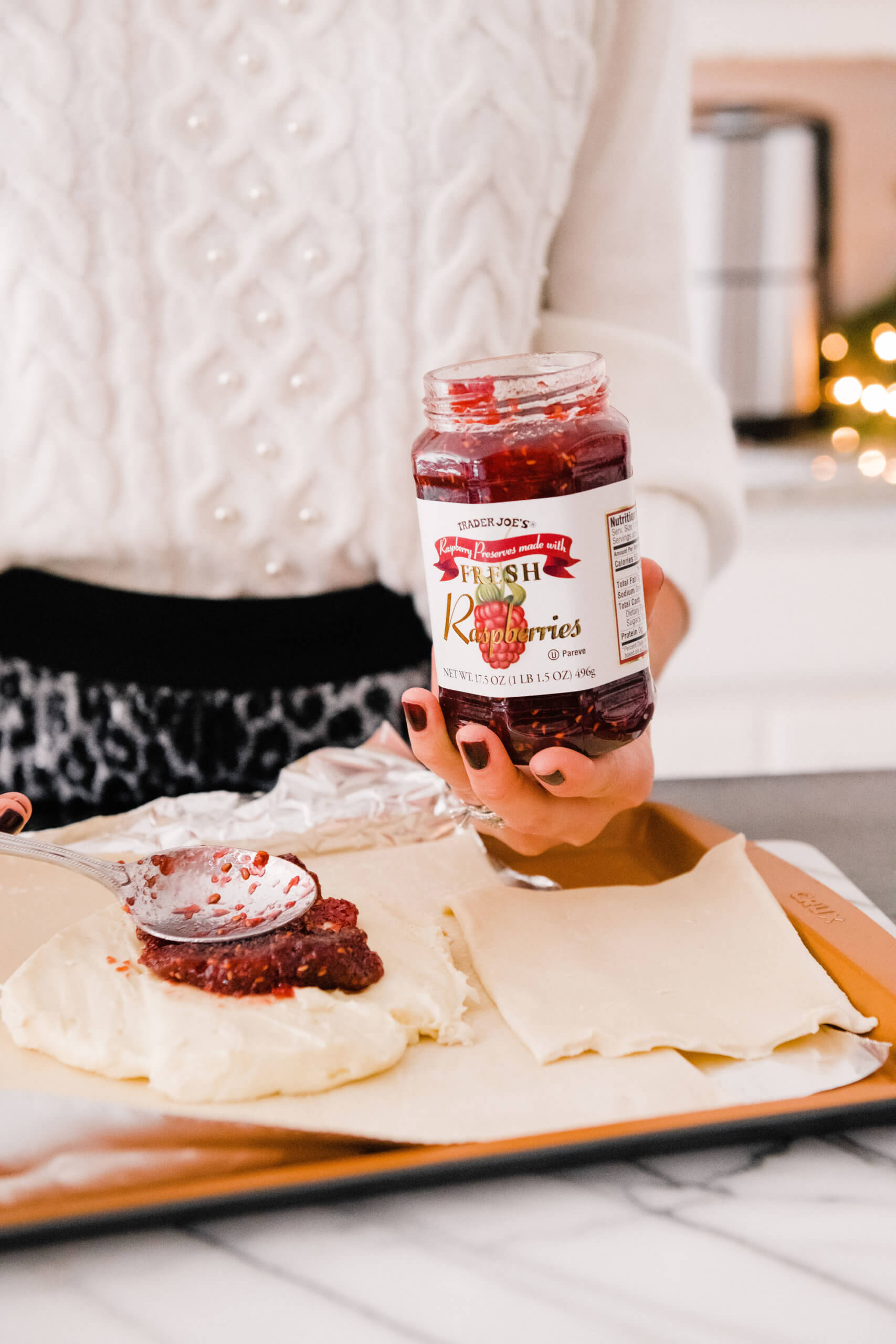 Hostess With the Mostess With JCPenney + Air Fryer Brie Recipe December 15, 2019 | *This post is sponsored by JCPenney and ShopStyle. Today I’m partnering with JCPenney and I’m giving you an easy and inexpensive formula to be Hostess with the Mostess this Holiday season! I finally caved and bought an air fryer and am making the most delicious air fryer brie recipe for you guys to entertain with over the next few weeks! I’m also showing you the cutest outfit all from JCPenney so that you can look darling, stay on budget and allocate more budget to entertaining friends and family! Hostess With the Mostess With JCPenney: Air Fryer | Ivory Sweater with Pearl Detail | Sequin Leopard Skirt | Black Heels First, let’s talk outfit! The entire thing (sweater and skirt!) are around $45 and it looks like a million bucks! The sweater is a plush, soft cable knit, with chic balloon sleeves and delicate pearl embellishments. It’s a great TTS fit (I’m wearing a S) and is priced under $30, which is a STEAL for this quality you guys! The skirt is leopard print with a full layer of clean sequins sewn on top. It gives just the right amount of shimmer and shine to make it feel special, without being over the top. It’s a pull on elastic waist and is super easy to wear. I’m wearing a small here but would recommend sizing down for the best fit! I paired the set with a simple, classic black pump and felt comfortable enough to entertain in, but festive enough for the Holidays! Now let’s get to this recipe goodness!!! Y’all I was hesitant to buy an air fryer! The counter space it takes up, having another big contraption and also learning how to use something else was all together intimidating. BUT I’ve really never heard a bad review about having one, so I have to admit I was intrigued. Not only does it offer a healthy alternative to deep frying food, but it makes achieving the fried taste and texture easy and mess free. I pulled the trigger on this COOKS air fryer at JCPenney on Black Friday for a steal of a deal and am SO glad that I got one. The first recipe that I tried in it was this brie wheel and it totally knocked my socks off. If anyone on your list loves to cook or may be interested in an air fryer, THIS one is such a great option. It’s large enough to cook for a family but can also be stored in the pantry or a cabinet when needed. Here’s the super easy, no fail recipe that’s absolutely perfect for Holiday entertaining! Air Fryer Brie You’ll need: -Brie Wheel (without rind) -Fruit preserves (I chose raspberry) -Sprinkle of brown sugar -Roasted, chopped pecans -Puff Pastry (thawed) Directions: Pre-heat air fryer to 380′ Place puff pastry on a greased sheet of foil that will fit into the fryer tray Roll out puff pastry, place brie at center Layer on a generous amount of fruit preserves Top with chopped pecans Sprinkle with brown sugar I cut a round piece of puff pastry to place on top of the brie so that all areas were enclosed and nothing melted out. Fold the brie up in the puff pastry, pinching closed at seams. Brush lightly with an egg or melted butter wash Place in air fryer for 15 minutes at 380′ OH MY GOSH IT CAME OUT SO GOOD! Ta-dah! In under 15 minutes I now have this beautiful appetizer that’s certain to be a crowd pleaser! I served it with a variety of sweet and salty crackers and garnished it with seasonal berries and stems. I am so impressed with the power of this air fryer for the price and cannot wait to try so many more recipes! If you’ve been contemplating an air fryer, this one from JCPenney is certainly worth adding to your list. The recipe options are endless and easy! If you already own an air fryer, you certainly can’t go wrong with this outfit for the price, so really it’s a win win situation! Other fun kitchen gifts to give: