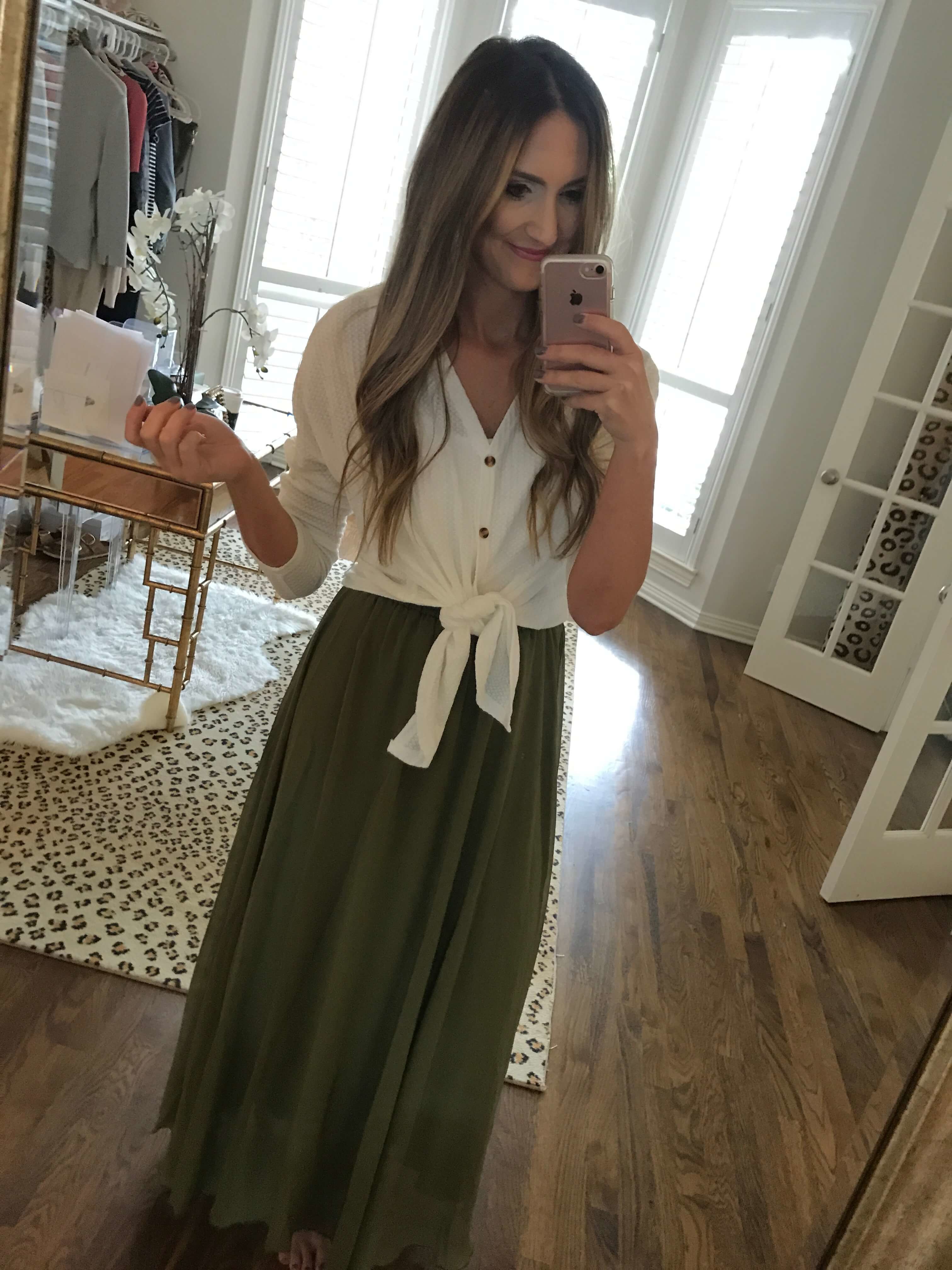 Amazon Fashion Haul | August August 19, 2018 | Welcome to the Amazon Fashion Haul for August! You guys know how much I love scouring Amazon for hours on end to find the best of the best pieces that they have to offer. This month I tried to focus on buy now, wear now pieces that will also take you through Fall transition. Think great base layers to build upon, light jackets and transitional tops. The post is written in the exact order that I’ll also be posting the try-on sessions via Instastories, so watch them there and head back over to shop. Sizing details and fit reviews are ABOVE each photo. *Housekeeping: please know that these hauls are only made possible by the small affiliate income that I earn from the sales generated by them. I personally buy each piece so that I am able to try it on and give an honest, real time review for you guys. If you want to ensure that I am given credit, please avoid checking out within the Amazon app (it cancels out our credit, so only Amazon benefits) and make sure that you’ve clicked on one of my links before checking out. Thank you so much for considering this, I’m happy to keep growing these posts! I wore this 2 piece set in LA a few weeks back and I thought that my DMs were going to shut down with how many of you asked about it. To be honest, at first I dismissed it. I thought that the fabric felt kind of off and I didn’t even try it on for a few weeks. But when I was packing for LA I decided why not just try it on and that’s definitely where the magic happens. The high waisted pants paired with the crop top are the cutest duo and are still flattering and a bit flirty. I cannot tell you how many compliments I got on this outfit! It’s under $20 and I thought that the M fit great. Two Piece Set | Under $20 | Wearing a M This dress is a dupe for the ever popular lace midi at Nordstrom, except that its 1/3 the price! The fit is actually pretty cute and it definitely feels more expensive than a dress that’s under $30. The M fit me great, but as a full C cup, I didn’t have ANY extra room. Probably not a great option if you’re larger than a C or D. Lace Overlay Midi Dress | $29.99 | Wearing a M One of my favorite tops from the haul because it’s so dang practical + functional. There are tons of ways to wear it (see below) and it’s one of those super soft, easy to wear tops that you’ll want to throw on every day. I’m wearing the M and I have some extra room. Waffle Knit Top $19.99 | Wearing a M Waffle Knit Top $19.99 | Twist Front Sweater | High Rise Skinny Jeans Another favorite! This $14 top is SOOOO good on. It does a great off the shoulder drape and then also has a slight banded hem to give you shape. It’s a good throw on and go top for anything from errands (with a sports bra) or to a date night (with some jewelry). The small was a great fit, it does run roomy. Off the Shoulder Top $14 (wearing a S) | Black High Rise Skinnies (under $50) I’ve always loved a good long vest as a layering piece and this one was exactly what I was looking for for Fall. It’s a super soft cotton, has pockets and is the perfect lightweight top layer. Great over dresses, with skinny jeans or even with leggings, you’ll always reach for this thing I swear. I’m wearing the S here. Also, so many of you have asked about my squash blossom necklace recently and YEP it’s from Amazon. An awesome option that’s so affordable. Duster Vest Under $20, Wearing a S | Squash Blossom Necklace If you’re under 5’6 this vest might be too long, but THIS ONE is a great alternative with a shorter hem! $12 Layering Tank | Skinny Jeans | Booties (perfect reviews) This little crop jacket was just TOO good. The detailed embroidery makes it look like it’s from an upscale boutique when it’s really under $35! I love it paired with flares or skinny jeans and it’s also another great transitional piece that will take you through Fall. Boho Embroidered Jacket ($33), wearing a Small / Flare Jeans (wearing s 28) / Booties **If this jacket sells out, and you want a similar look…THIS ONE is amazing too! This is the embroidered top that I wore the other night with white jeans. I feel like this pic isn’t really doing it justice because it’s SO pretty. Another one with high end details for a steal. It is one size though, so if you’re an XS or a shorter Small it’ll probably be a little big. Embroidered Blouse $25 / one size / multiple colors I’m loving skirts lately and I wanted to try a few of these lightweight flowy skirts to style through the Fall. This one has a nice elastic waist that stays put and the XL (length sizing) was great for me (I’m 5’9). This is a wonderful option to style in your family photos this Fall, it flows so beautifully. There are also tons of colors. Maxi Skirt $35 (one size in the waist, L/XL denote length. I wear the XL length) Other ways to style it: Similar Denim Jacket Remember everyone’s FAVORITE dress from last month? The really easy Tshirt dress that just fit right?! Well, this is her long sleeved older sister and she also fits wonderfully! This one has a slight hi/lo hem, making it just a touch longer in the back. It’s body skimming and flows away in all of the right places, but is still flattering. There are TONS of ways to style it as a transitional dress and this is a true winner for nearly everyone reading. I’m wearing the M here, but would have preferred a Small. High Low Dress $22 (multiple colors) / Wearing a M Other styling options: Left: Dress | Cardi | Scarf | Booties Right: Dress | Similar Denim Jacket | Wedge Booties Here’s another dress from the same brand. This one is a midi length and has more of a body con fit. I’m not a huge body con fan, but I do think that this is a good “base layer” dress to build upon as we transition. Throw a long vest or blazer on with it and you could totally take it from work to weekend (see below). Midi Dress | $20 | Wearing a Small Left: Midi Dress | Duster Vest