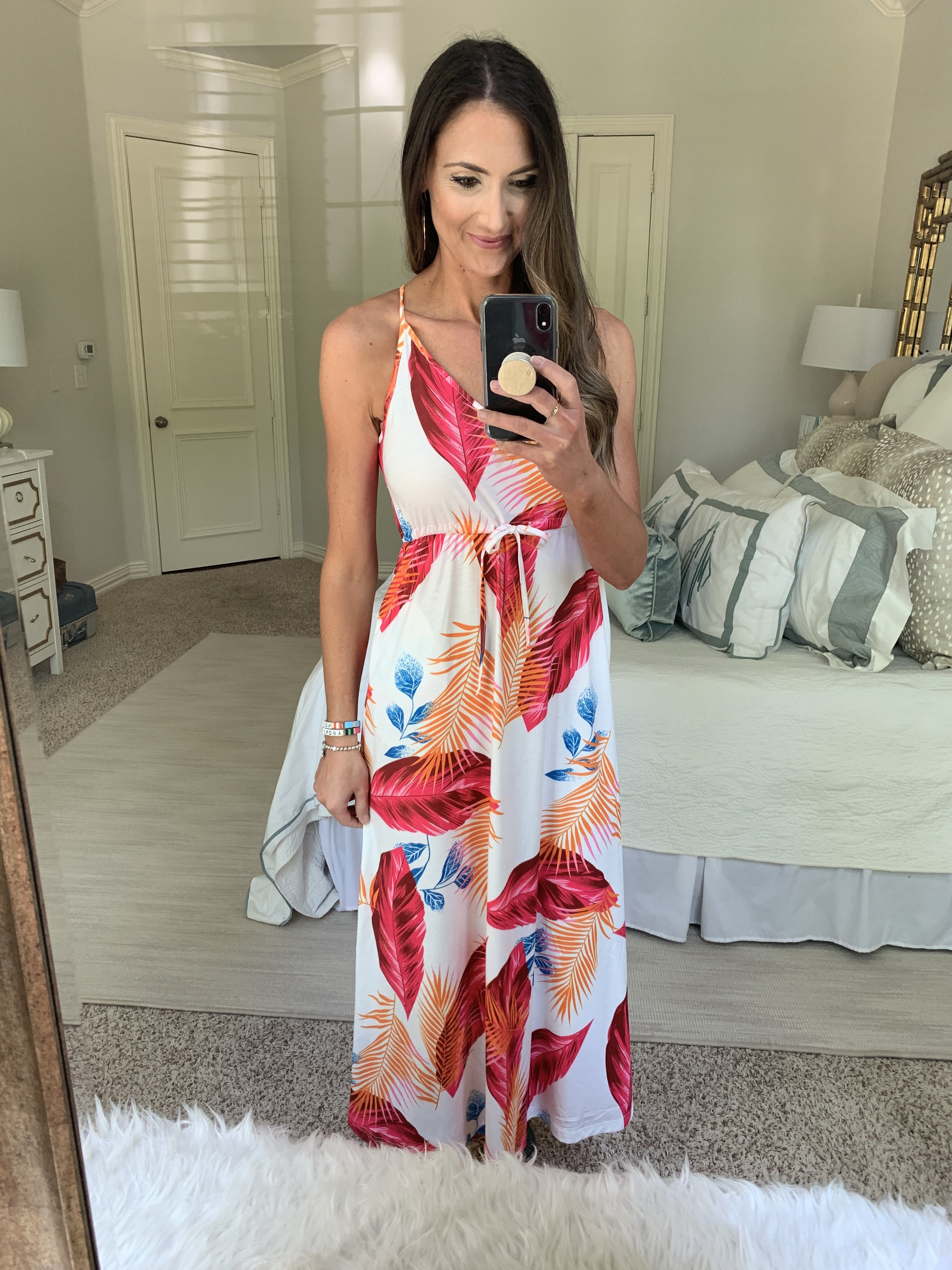 Amazon Fashion Haul | June | Vacation Style June 20, 2019 | Whohooo we meet here again— another Amazon Fashion Haul coming at you and this one is goodness! Lots of inexpensive Summer fashion, great basics and 3 swimsuits that were a HIT! If you’re new here, it’s best to snag items that you’ve got your eye on FAST as the stock tends to sell out quickly. If you are coming over from my Instagram try on session (posting at 8pm CST tonight), things are listed in this post in the exact order that I’m trying them on. Sizing details included as well. I hope that you enjoy and are able to grab some great fashion pieces for your upcoming vacations! These bold stripes make me so happy and I love the way the lines go in this dress. It’s so soft and really exceeded my expectations for quality. For under $20, this is a statement basic that’s easy to throw on and go. I’m wearing the small here, but I will say that if you’re hippy like me, it’s best to size up. Stripe Dress $17 (S) Can you get over that this is a two piece set??? Also that it’s under $17?? I was honestly shocked! I love it because you can wear each piece separately, but it’s also a darling outfit. You will not get over the quality for the price. I love this with flip flops for a vacation or dressed up with a neutral heel and statement earrings. Two Piece Set $15.96 (S, TTS) | Hat (also Amazon) $15.99 I swear this feels like an $80 dress from a department store and it’s really $22 from Amazon! The print is bold and beautiful and the ties are adjustable at back and waist so you really get some good shape. Floral Maxi Dress $21.99 (S, TTS) I liked this print so much that I ordered it in the mini and the maxi version. The mini version isn’t here yet, but the maxi version is pretty cute! The print feels vintage and the fit is flowy and forgiving. For $24.99 I’m loving it and can see myself styling it up or down! Floral Maxi Dress $24.99 (S, very flowy) This little ruffled cutie has so many darling details—cap sleeve, button front and cute tiered ruffles. It’s a nice linen like material and I love the olive green color for late Summer. I would suggest sizing up in this one if you are larger than a B cup. It comes in tons of color and prints. Ruffled Dress $24.99 (wearing a S but would prefer a M) THIS DRESS IS A SHOW STOPPER! For $30 you will honestly NOT believe it! It’s insanely well made (both fabric and print) and looks like you paid hundreds of dollars for it. If you have a Summer wedding or event coming, up this is your dress! I’m wearing the small here, but would prefer the M for more length in the sleeves and torso area. Floral Chiffon Maxi Dress $31.49 (S, but would prefer a M for more length in arms) Another absolutely gorgeous dress—this one is under $14! It’s very flowy, so probably best if you’re tall but oh my gosh it’s beautiful on and feels amazing to wear. The neck tie is adjustable and I made mine more like a halter, but it also has an open back so you’ll need a bandeau with it. There was a similar Free People dress years ago for over $200 and I think that this is such a great option—so glad that I scored it in time for the beach! Royal Blue Maxi Dress $13.98 (S, definitely ok to size down) Noone will believe that you found this embroidered caftan on Amazon, I promise you! It’s hard enough to find pretty caftans, but this one is truly beautiful and only $22! Lots of color combinations HERE. Black Caftan $21.83 (S, TTS) | Hat (also Amazon) $15.99 Was a little hesitant about this two piece set, but ya know what?? I kinda liked it! It’s feminine and cute and I could easily wear the skirt on its own as well. It comes in lots of colors and patterns HERE. Floral Two Piece Set $21.99 (S, TTS) Speaking of skirts—-how about this little spotted number??!? I adore it and this that it’s a fun neutral to pair your tanks and tees back to! Under $20 and a total score! Black Tee (S, TTS) $23.80| Black and White Spotted Skirt $18.99 (S, TTS) This skirt was probably my favorite piece from the haul- I love the color, the length and the print! This is an absolute must have for $16.99!!! Hat (also Amazon) $15.99 | V Neck Tank 2/$20| Printed Ruffled Skirt $16.99 (S, TTS) This ruffled tiered skirt is insane quality and style for the price. Pair it with a tank and sandals for a casual dinner for dress it up with heels and a silk cami for an event! Tiered Ruffle Skirt $27.99 (S, TTS) THIS.JUMPSUIT.IS.SO.FLATTERING! …and well made! The halter neckline and well made woven fabric make it easy to dress up or down and I am here for it. I’m wearing a small here and it did pull slightly across the hips so I plan to re-order a M. Halter Jumpsuit $39.00 (S would prefer M) If you need a beyond comfortable throw-on-and-go jumpsuit then this one’s for you! It’s super soft, had a flattering fit and the price cannot be beat. Wearing a S here and thought that it was TTS. Black Romper $29.00 (S) Ok so I own this dress in 4 versions (maxi, midi, v neck and long sleeve) and I have to say that the muscle cut might be my favorite! It’s super flattering on and such an easy fit. I had it on in my stories on Tuesday with a denim vest thrown over it and I was beyond comfy. Best part is that it comes in a ton of colors for $15.73! See them all HERE. Muscle Cut Swing Dress $15.73 (S, TTS) Y’all loved last months graphic tee, so I thought that I’d try another one out. This one is just as good and the colors are even better in person! It’s super well made and the graphic is printed well. Of course I love that it’s $17, too! See all of the colors HERE. White shorts are hard, that’s a fact. These elastic waist pull on shorts make it a bit easier to find a good fit because they are elastic (duh) and a modest length. I loved the fit and would pair them back to so many Summer tops in my closet! See them HERE, as well as other colors. Wearing a 6 in the shorts and like the little bit of extra room. Lazy Da