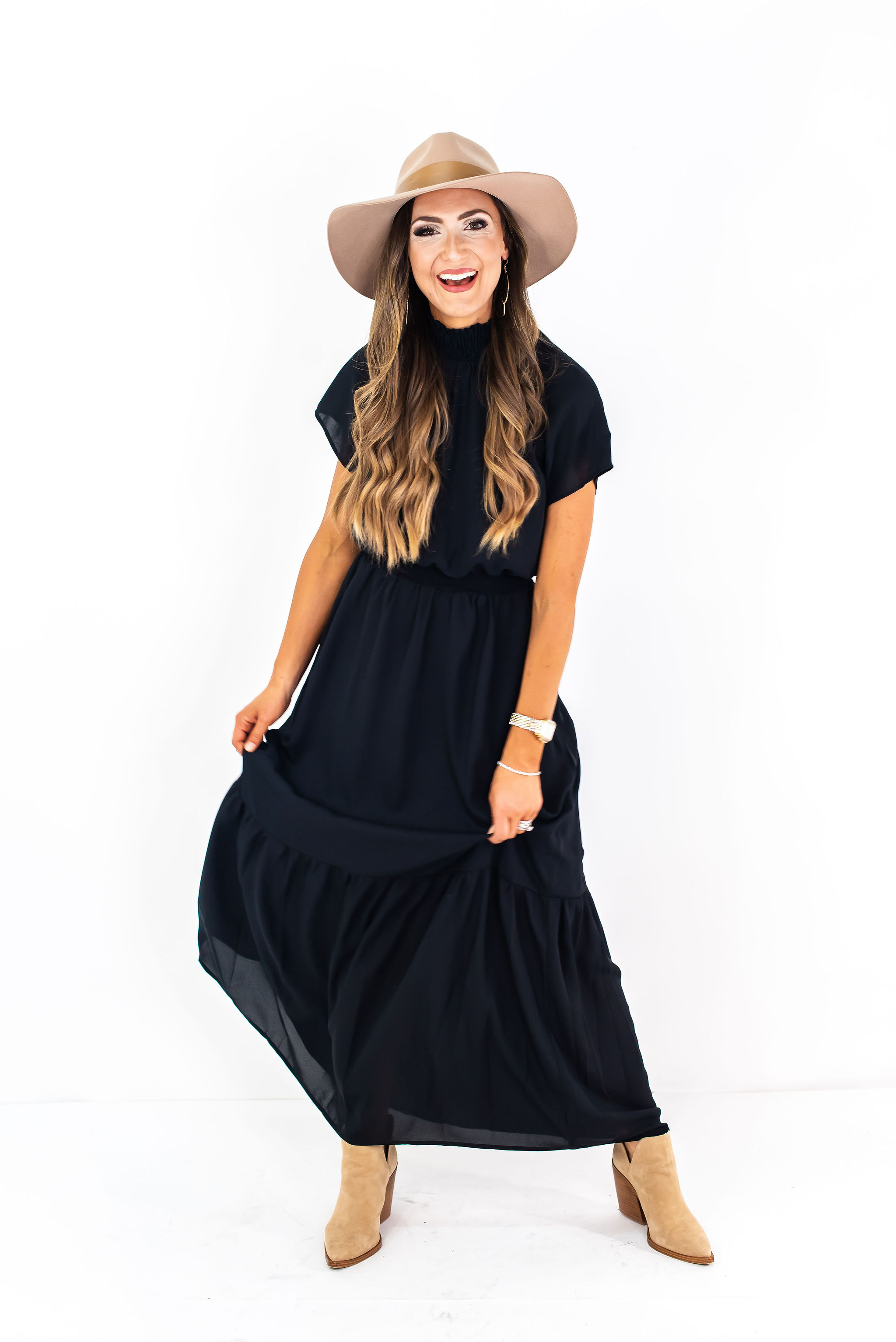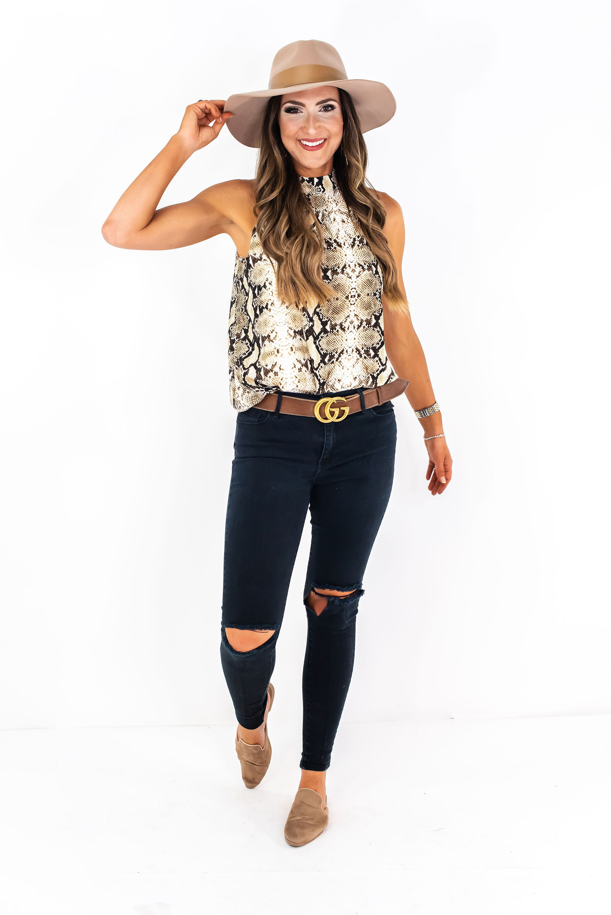 City Safari at Nordstrom! August 20, 2019 | Writing a quick post styling out two of my outfits from the new Gibson line “City Safari” now available at Nordstrom! This is one of their best launches in a while and I feel like they really did nail the Fall trends and silhouettes here. These are my two favorites styled casually and then dressed up a little. Both are great to wear now my can also be layered for Fall. Shop the full line HERE. City Safari at Nordstrom: Snake Print Top | Smocked Maxi Dress This snake print halter is SO well done and I love the print and fit of it. The neutral mix is great to throw on with black jeans and some mules and you have a really on trend outfit that’s fun for something casual or even a laid back date night. Snake Print Top | Jeans | Belt | Similar Hat | Earrings Kind of LOVING this whole outfit and am plotting where I can wear it this weekend! Snake Print Top | Jeans | Belt | Similar Hat | Earrings Here’s a super easy way to dress the top up for the Fall—simply add a polished black skinny and your best over the knee boots! Such a sleek, fun look that feels dressed up and sassy! Snake Print Top (TTS, wearing a S) | Black Jeans | OTK Boots I was shocked at how much I loved this dress. I’ve said it before, but I’m loving the feminine play on peasant dresses for Fall and they really nailed it with this one. The mock neck and super dainty sleeves, along with a flattering waist make this one an absolute winner! I will be living in it this Fall and think that it’s totally worth the $88 investment! See the other prints HERE. Smocked Maxi Dress (TTS, Wearing a S) | Booties | Similar Hat | Earrings Here’s an easy way to dress it down with a felt hat and booties…. It’s also totally functional for a night out and here’s how I would dress it up a bit… Smocked Maxi Dress | Earrings | Heels | Similar Clutch I’ll share try-ons of these pieces tonight in my Instagram stories! I hope that you enjoyed these fun new arrivals!