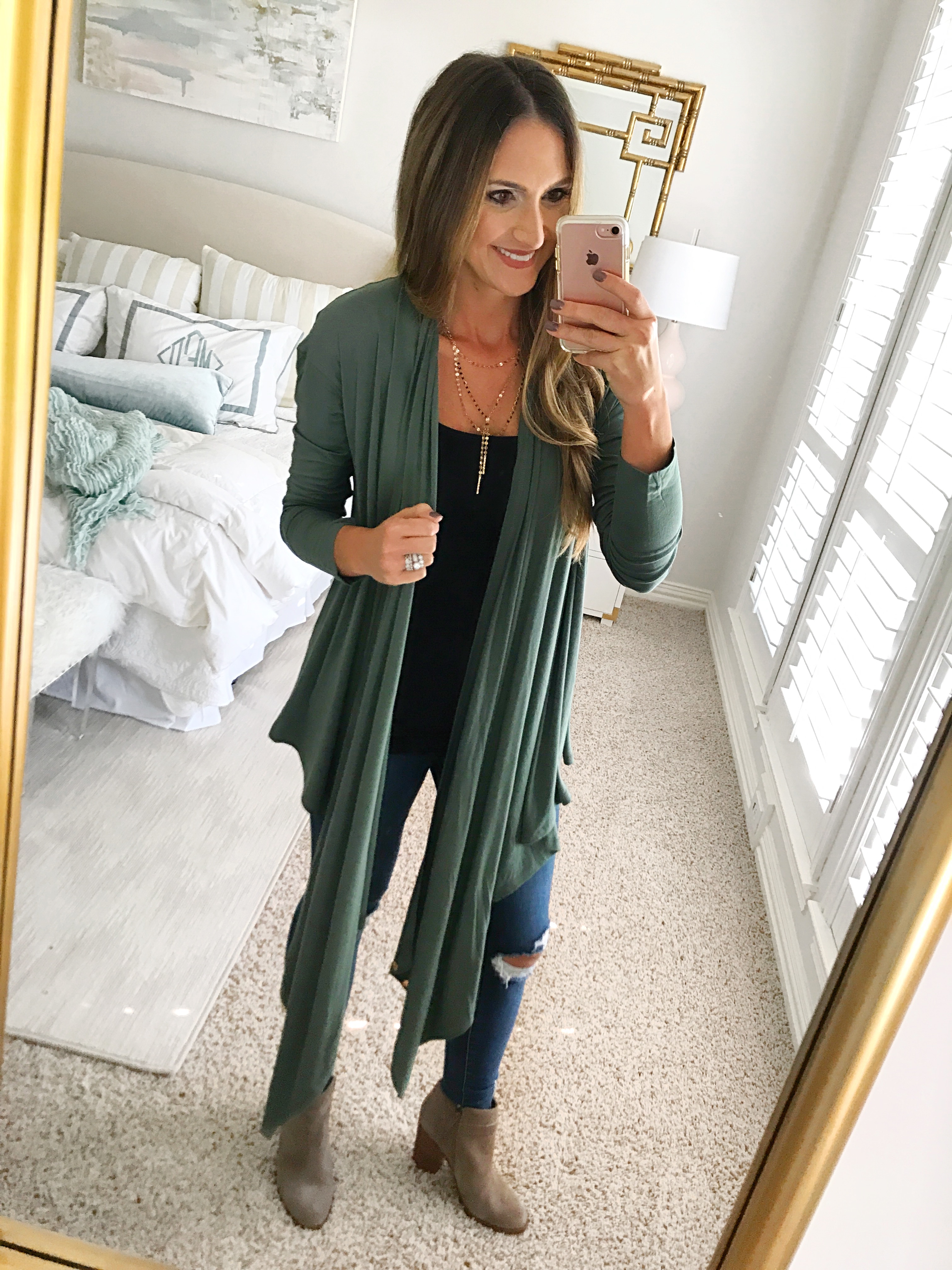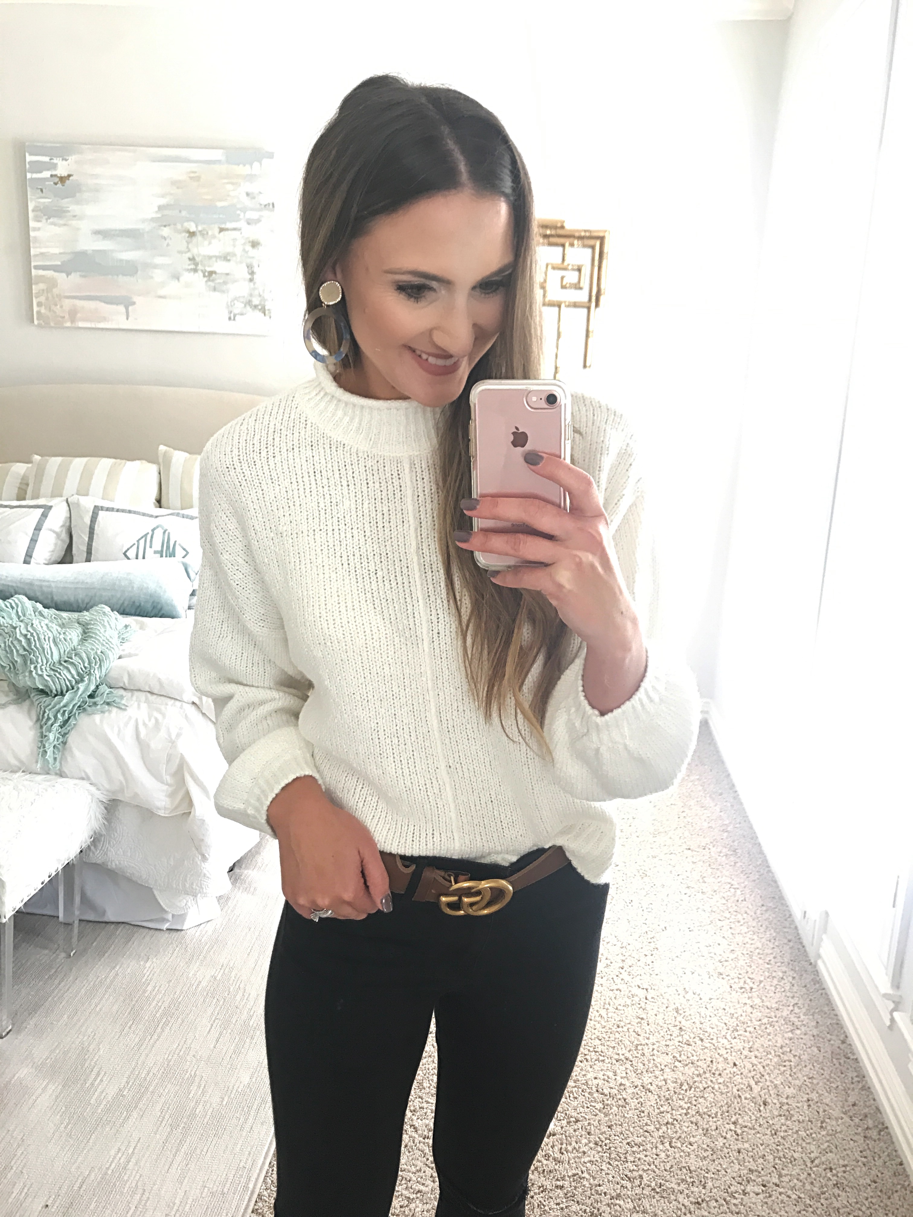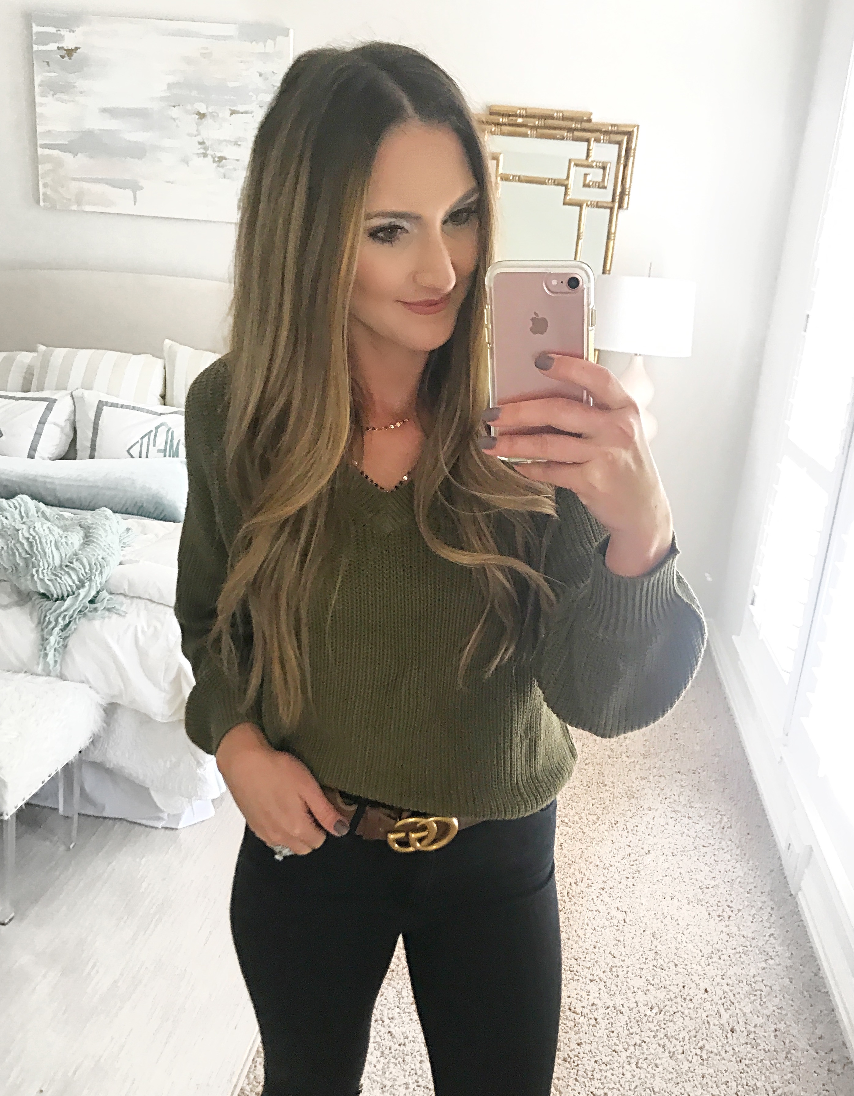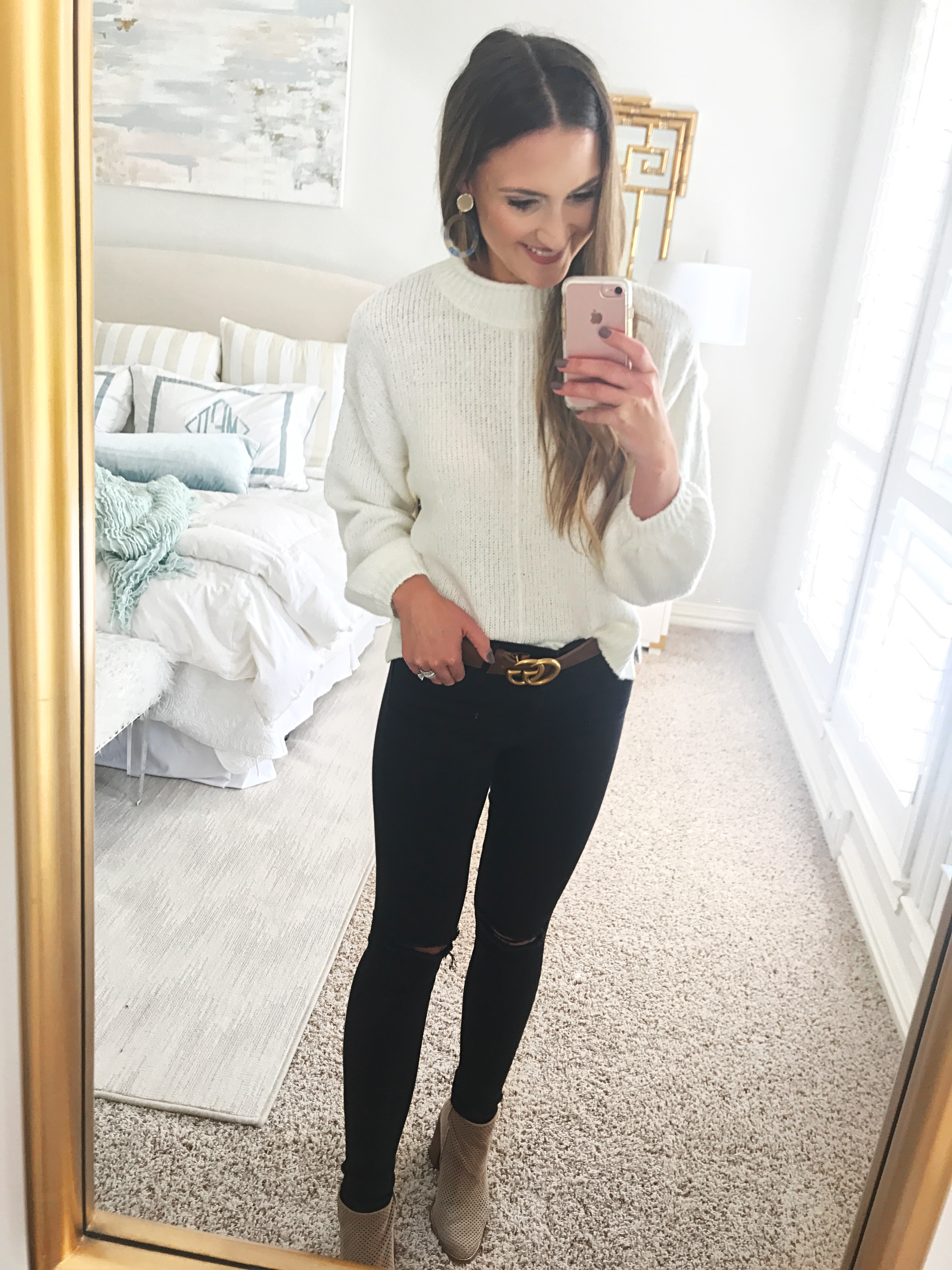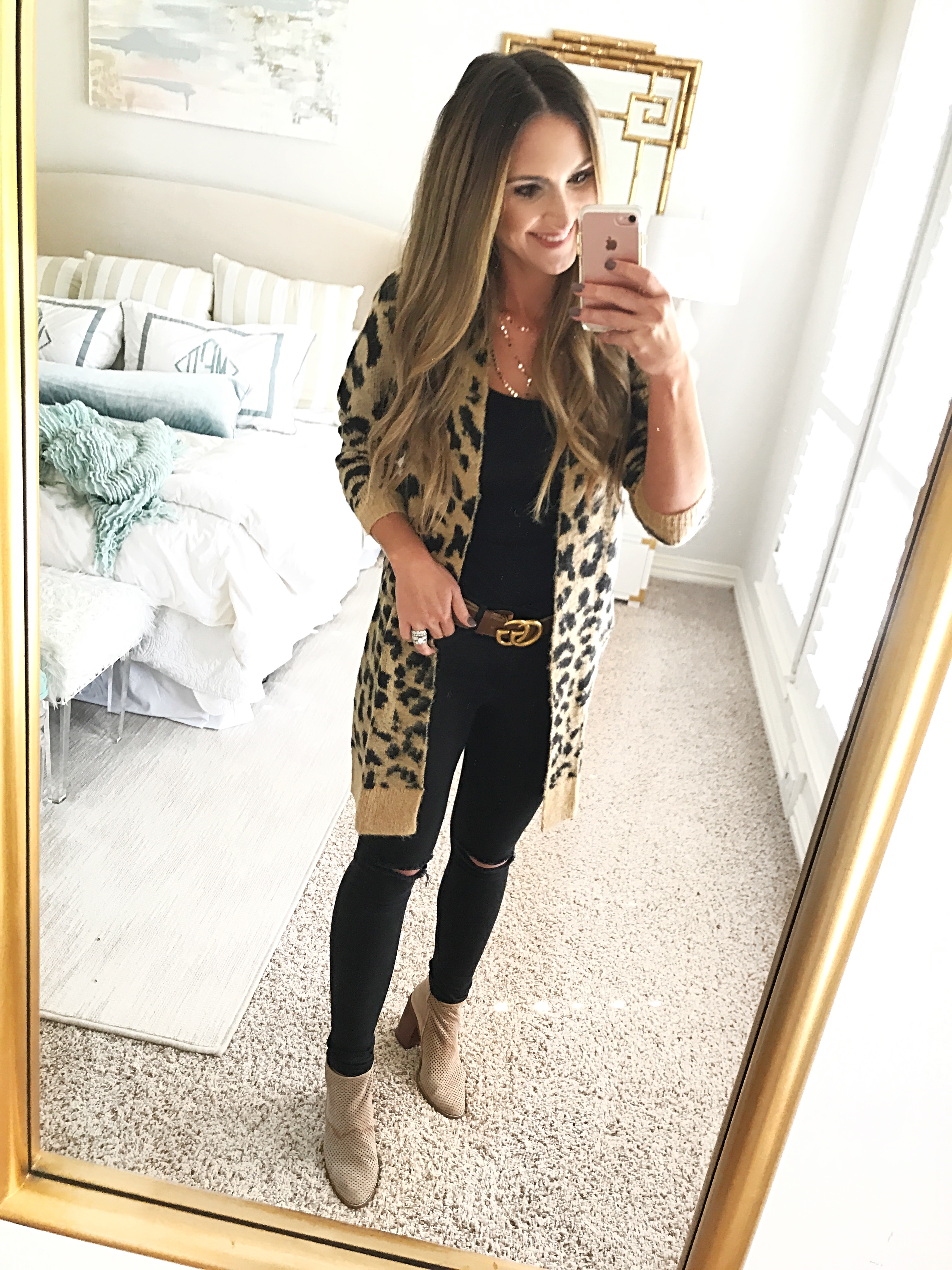 6 Cute Affordable Sweaters for Fall to BUY NOW! August 30, 2018 | Morning Friends! How’s your week been? Things have been a little unexpectedly quiet here this week for no good reason other than I am playing major catch up behind the scenes. I’ve said this before a few weeks ago, but August is a hard month to blog through- it’s hot…you still have boob sweat…and no one wants to talk about cute affordable sweaters or Fall just yet. I am so happy to say that I trudged forward and am feeling SO excited and ready to start covering Fall content! This post is pretty much the official “Fall Kickoff” post and I thought that I would get everything started with inexpensive, yet really cute sweaters that don’t lack style details. Here are 6 cute affordable sweaters for Fall that I think you should buy now! 6 Cute Affordable Sweaters for Fall: Starting with a sweater that I already own but bought again in this newly released color! It’s convertible, so essentially it can be worn as a sweater or as a cardigan, which is a total win. It’s similar to the Anniversary Sale version, but this one is a viscose + spandex blend, so it’s more of a cozy t-shirt feel. It comes in multiple colors, is UNDER $50 and is one of those pieces that you’ll throw on a go all of the time. Convertible Cardigan $49 (Wearing a Small) | Distressed Skinnies | Booties | Layering Necklace Next up is this leopard cardigan and it’s no secret that this is my favorite piece from the haul. I’m always a sucker for a good leopard print, but couple this with the $65 price tag and the tunic length and I was sold in under 2 seconds. This is a really great piece, gals and I think that you’ll get a ton of use out of it! It does add some warmth without being bulky or scratchy and is great to layer under. A truly go-to Fall piece for all of you leopard print fans. Leopard Cardigan $65 | Layering Necklace | Black Jeans | Belt | Layering Tank This is my ideal Fall outfit. Pulled together, but still fun and lots of details… Leopard Cardigan $65 | Wearing a Small This ballon sleeve sweater is surprisingly ON SALE now for under $30 and is such a steal! I loved the overall shape and fit and the length is perfect to wear with your high waisted jeans. It’s a soft mid-weight knit and has a split hem that makes it perfect for front tucking! I love the winter white color, but if you want a more bold hue, they have a few other gorgeous colors that are on sale for $29 as well! Balloon Sleeve Sweater $29 (Wearing a Small) | Black Jeans | Clutch | Booties | Belt This olive green sweater was very unsuspecting until I put it on and then we fell in love! It’s the most beautiful shade of olive green (which I’m all about for Fall) and is a lighter weight knit that you can really do a lot with. First, it’s $39, so there’s THAT! But it’s also a great length to wear with higher waisted jeans, has a flattering V Neck and a slight balloon sleeve. This one is great for layering necklaces scarves on top of, but also layering a crisp button up or stripe tee underneath. Such a steal! Olive Green Sweater $39 (Wearing a Small) | Layering Necklace | Belt | Black Jeans | Scarves Olive Green Sweater $39 (Wearing a Small) | Layering Necklace | Belt | Black Jeans | Metallic Mules | Stripe Tee | Leopard Clutch Super Soft Sweater $45 (Wearing a Small) | Black Jeans Druzy Earrings This cable knit beauty was another sweater that I wasn’t sure if I was going to like and I ended up LOVING it! It’s cozy, fairly lightweight and the most beautiful smoky, grey color for Fall. I am absolutely going to be layering button ups under this sweater and wearing it with jeans. The cable knit gives it a great texture without being overwhelming and the $45 price is oh so right! Cable Knit Sweater $45 (Wearing a Small) | Black Jeans Cable Knit Sweater $45 (Wearing a Small) | Black Jeans | Metallic Mules | Neutral Booties Did this post get you excited for cooler weather?! It certainly did for me! I cannot wait for crisp mornings and a lightweight sweater!!! Thankfully, my sweater collection is looking great and it didn’t break the bank! I hope that you guys have a wonderful long weekend! xo Loving this cute affordable sweaters feature? Take a look here for more of my Fall/Winter favorites!