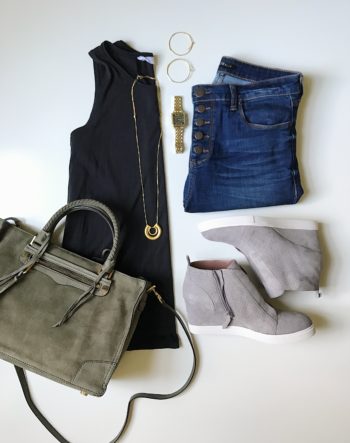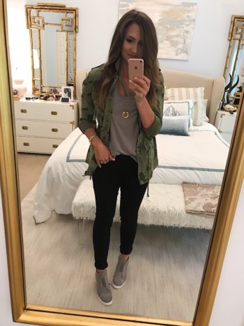 Fall Capsule Wardrobe for Busy Moms! August 17, 2017 | Ok ok I’m SO excited about this post!!! Like I haven’t been this jazzed in a long time! In my heart I know that no one sets out to look like crap on the daily. Everyone WANTS to look pulled together and feel confident, but unfortunately this season of life (aka Motherhood) doesn’t always allow us the time for that. Since nothing makes me happier than seeing mamas find their confidence again, I wanted to take a lot of the thought out of putting together a great outfit on busy mornings, so I’ve created a Fall Capsule Wardrobe for busy moms! I combed through hundreds of pieces, ordered a ton of stuff to try for myself, read nearly every review, and, in the end, I kept the best of the best (all at the best prices, I might add) and am showing you how to maximize each piece. There are only 25 items in this capsule (including shoes and accessories) and I’ve created tons of “everyday chic” outfits with them to serve as a resource for you busy ladies who don’t have time to think about crafting an outfit every morning! If you’ve been here a while, you might remember that I wrote THIS POST last year and it was a HUGE hit, but I was always a little bummed that it wasn’t very visual, as that’s the way I personally like to see things. This go round, I set out to really create a visual resource for you guys to use in your day to day lives. I styled tons of looks both in flat lays and on myself so that you get a feel for the fit and flow of the pieces. I wanted you to feel confident in that if you invested in the pieces of this fall capsule wardrobe that you will truly get your wear out of them. If you really wanted to make things easy and always have some inspiration on hand you could print this post out and keep it in your closet to refer back to the images when you need a quick outfit or even save it to your Pinterest boards to refer back to! Fit info: I’m 5’9 | 150 | Size 6 / 28/ M So, here we go…1 Fall Capsule Wardrobe… 25 pieces…all affordable, all functional, all highly rated, all versatile and all COMFORTABLE… THE ULTIMATE FALL CAPSULE WARDROBE JavaScript is currently disabled in this browser. Reactivate it to view this content. One / Black Tank $68 | Two / Grey Tee $25 (Another great grey v-neck tee option HERE) | Three / Stripe Tee $29 I chose 3 tees all with a different sleeve length and detail to give you some variety in your basics. all are super soft, comfortable and great as a Fall base layer. Four / Ivory Tunic $28 | Five / Black V-Neck Sweater $39 | Six / Stripe Peplum Top $35 | Seven / Tunic $49 ((Not shown // Grey Knot Front Sweater $49)) For a step up from a tee shirt, I chose quite a few different styles that are all quite functional. Each has a fun, unique detail to make it feel a little more “elevated” and they are all still great for layering. Oh and not ONE is over $50 bucks…huge win! Eight / Long Cardigan $49 | Nine / Denim Jacket $79 (Another great denim jacket HERE) | Ten / Camo Jacket $89 These Fall top layers each have great details but all work as very functional and versatile top layers as well. Eleven / Boyfriend Jeans $55| Twelve / High Waisted Jeans $69 (Another great high waisted pair of jeans HERE) | Thirteen / Dark Wash Skinny Jeans $59 (My other favorite pair of dark wash skinnies HERE) | Fourteen / Black Skinny Jeans $69 | Fifteen / High Waisted Leggings $54 I own and love each and every one of these pants and highly recommend each! Each one brings a unique fit and on-trend style without being excessive! Sixteen / (Similar) Olive Green Bag $295 | Seventeen / Black Bag $79 I chose one fashion color and one basic black bag but I feel like both are neutral! Both are functional for moms with a cross body strap option and both are big enough to carry kids’ junk without being too big. Eighteen / Long Necklace $48 (Gold Necklace Alternative HERE) | Nineteen / Gold Hoops $60 | Twenty / Gold Watch $250 I could honestly ONLY wear these three pieces daily and be totally content. They go with ANY and EVERY thing and are timeless pieces that you won’t get sick of! Twenty One / Sneakers $120| Twenty Two / Booties $89 | Twenty Three / Mules $90 | Twenty Four / Wedge Sneakers $120 All of these shoes are new for me this Fall and I am truly excited about each pair, but I have to tell you there are two specifically that I’m LOVING. The mules and the wedge sneakers are going to be my go-to shoes for Fall and let me tell you why… They are both beyond comfortable and each is so on-trend in it’s own right. I’m already loving styling them! Here are a few ways to wear the cute little knot front sweater. Note that it’s under $50 and comes in a ton of colors. It’s so soft that you will be reaching for it daily! Boyfriend Jeans | Mules | Grey Knot Front Sweater | Long Necklace (Gold Necklace Alternative HERE) | Gold Hoops $60 | Gold Watch Here it’s thin enough to layer the denim jacket over and looks so cute with slimming black jeans. Grey Knot Front Sweater | Camo Jacket Black Skinny Jeans | Mules | Gold Hoops | Gold Watch One of my favorite (and a little unexpected) ways to wear the knot front sweater was with this cute little peplum top underneath (right photo). It adds just enough interest and the peplum ruffle peeking out is just too cute. I buy this pocket tee EVERY.single.year. It’s the perfect lightweight layering piece for Fall and I love the slight boyfriend fit (along with the price)! I would wear it with nearly any outfit, but here it is with a basic skinny jean and slip on booties. Stripe Tee | Dark Wash Skinny Jeans (My other favorite pair of dark wash skinnies HERE) | Booties | Black Bag Long Necklace $48 (Gold Necklace Alternative HERE) Denim Jacket (Another great denim jacket HERE) | Stripe Tee | Black V-Neck Sweater | Black Skinny Jeans | Wedge Sneakers One of my new favorite tops (I actually wore it yesterday in the August heat because I love it so much) is th