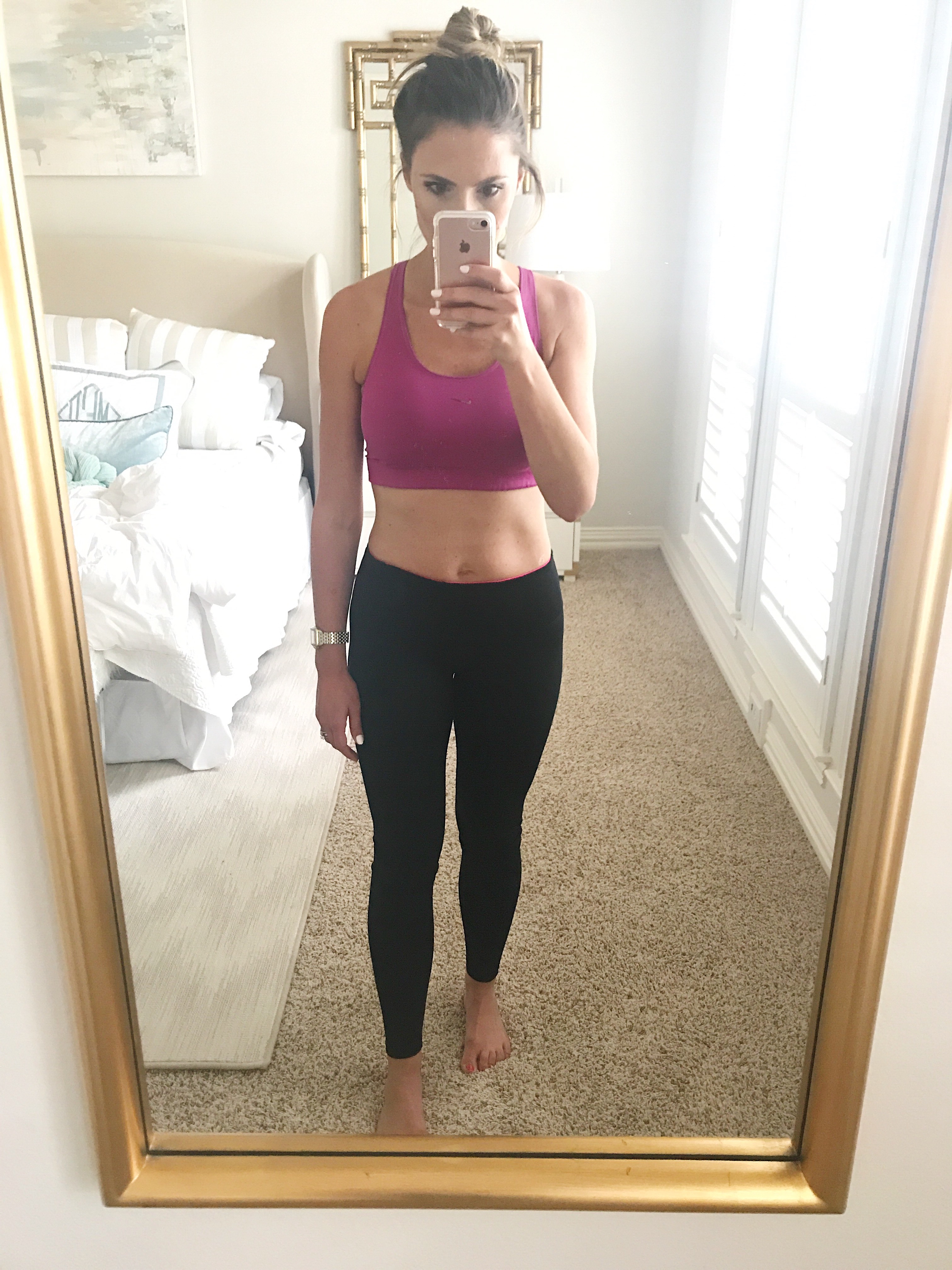 Fall Fitness Reset! August 2, 2018 | Hi Gang! Can you believe it’s August already??? If you read Monday’s post, you know that I’m flipping out a little with how quickly life is moving right now. I know that I will come to appreciate the schedule and structure, but dang the anticipation of all of the changes is about to kill me. Speaking of chaos, Summer is always SO hard when trying to maintain my weight. I never want to come across to you guys as a yo-yo dieter, because I absolutely take health seriously, but Summer is truly always a struggle. It’s in my DNA to battle against the bulge. If I don’t watch it closely, I can easily pack on 10lbs within 6 weeks no problem. I always feel especially susceptible in the Summer because schedules are off, margaritas are flowing and it’s so hot that I tend to retain more water. This Summer was no exception and here I am thinking about fitting into my skinny jeans as Fall looms and I’m not feeling my best. I feel fluffy. Does that feeling resonate with any of you? Like things are moving that don’t normally move, there are some areas sticking and touching and overall it’s just a funky feeling knowing that you are packing a few more pounds than necessary. Please know that I write this post with moderate hesitation and share these photos with great sensitivity. I by NO means think that I am overweight. I am within the range of my “ideal weight” as calculated by whomever invented the formula of 100lbs at 5ft (x 5lbs for every inch thereafter). But I know where I feel my BEST and that’s about 5-7 lbs lighter than where I am now…my waist trimmed, my thighs leaner and my behind trimmed. Those are the first places that I gain weight and they are definitely showing the signs of a Summer well indulged. My mindset is that I don’t want to waste any time not feeling my best. I never want to look back and think that I felt less than 100% confident in my body because we only get one chance, right? If that means that I have to push myself a little harder for a few weeks to get back there, then that’s what I’ll do. Doesn’t hurt that I have something MAJOR happening in 8 weeks. Stay tuned for that 😉 I’m blogging this journey only because so many of you have expressed interest in these types of posts, so I hope that they are well received because I am HELLA nervous talking in depth about stuff like this. So here we go…I am giving myself 8 weeks. That means at the end of September, I will be ready to slip into my skinny jeans and be feeling confident, stronger and in great shape. Fall Fitness Reset | The Fitness Plan If you follow along on Instagram, you know that I reached out and gave you guys a few options as to what you wanted to see me do. I want to take you guys along on this ride with me and have this be sort of a social experiment. You can just follow along or you can dive right in with me and we can do this together! The vast majority of people voted for Orangetheory Fitness, so that’s what I’m doing. The other votes were split this way (in order): BBG BeachBody Aaptive (in the App Store) Faster Way to Fat Loss Obe I was secretly happy that Orangetheory won because I have actually tried it once before and LOVED it! When I knew that we were actively trying to get pregnant with Lawson and I wanted to be in the best shape to kick off my pregnancy, I started Orangetheory. I can definitely tell you OTF got me there, but I did hang up the towel when I found out that I was pregnant because the first few months were rocky. I am excited to get back into it because I know that it will push me beyond anything I could do alone or at home. I see my personal best results when exercising in a group setting that offers a competitive edge. Its definitely extra work to leave the house for a workout, but for me its 100% worth it because I know that I push myself way harder with others around me and an instructor in my ear, which is especially good when I am trying to achieve a specific goal and not just maintain. I’ve been doing either the 5am or 6am classes because that’s what honestly works best for our family as a whole and I’m sure most of you can relate. I sneak out to class when everyone is still asleep and am able to get home and showered before the girls are up. It’s definitely hard to adjust to the 4:30 wake up for the first day or two but it’s absolutely manageable and I feel like a million bucks afterward. I opted for the unlimited plan and signed up for 2 months. This is in NO way sponsored by Orangetheory (although I would love to work with them in the future) and I paid full price for the classes. I disclose that because I understand that boutique fitness studios do charge a premium for classes, but for this 2 month experiment I thought that it was definitely worth it. My goal is to do at least 4 classes per week, with one other class or a long run outside of OTF. So I’ll be working out 5 days per week with two “off” days sprinkled in depending on schedules and how I feel. What is Orangetheory Fitness? Orangetheory is Heart Rate Based Interval Training. Say that 5x fast! Wearing a heart rate monitor the entire time, the workouts are split between treadmill, rower and weight room and are designed to target a heart rate zone that increases metabolism and energy. You can always view your progress on the screens throughout the room and really push yourself out of your comfort zone and into different heart rate zones, depending on your goals. They suggest spending at least 12 minutes of the hour long class in the “Orange” zone and/or earning at least 12 “splat” points (the time spent in Orange AND Red). I’ve been burning between 500-600 calories per class and I feel very much tapped out after the class is over. Here’s what my first class vs. my third class looked like, once I really came out of my comfort zone: Orangetheory Fitness | How to Get Splat Points After the first class, I was SO bummed at