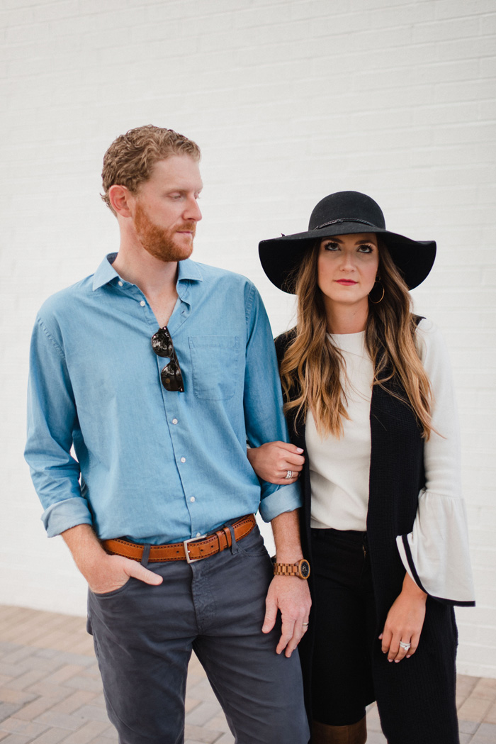 Meet My Husband + Fall Style for Him & Her September 14, 2017 | Today we have a special guest on the blog! My hubby is coming out from behind the scenes for an impromptu interview and joining me to share some Fall Style for him and her. I’ve gotten quite a few requests for a post like this, so I thought that I would spring all of these questions on him as he was packing to leave for a golf trip…because I’m not salty at all, right?! 😉 Thankfully he was such a good sport about it! A little about us…we met while living in Dallas and have been together nearly 10 years now…which seems SO crazy. We moved here to Charlotte for his job, but really hope to land back in Texas some time soon. We are so different in most ways, but what we have in common is a love for our babies, music, good food, and actually he’s really into style. These photos may looks all fluffy, but in reality we bicker like feral cats. We tell each other like it is regardless of the situation, and although that’s not always pretty, it allows us to move on much quicker. You remember this scene from The Notebook? This is 100% us. He drives me crazy and I’m a total pain in the ass, we both recover quickly and move on. It’s kind of like wash. rinse. repeat 😉 That said, marriage has never come easy for us and I don’t think that it ever will. It’s something that we work hard at every.single.day. Some are easier than others and we just so happen to be in a harder-than-normal phase right now as we both really really want a change for our family and it’s not happening on “our” time. With all of this said, our #1 common denominator is our faith. We know that God is using our marriage to pull us closer to Him, to keep crafting us into who we are meant to be in His light, and to lead us closer to fulfill our purpose here on earth. He’s teaching us patience, humility, and how to love on His unconditional terms and not ours. How blessed are we that God hasn’t given up on us yet and continues to work on us both individually and as a couple… So now that you know a little of the back story of us, here’s what Dan had to say. Also, if you don’t really care and are here for the outfits…I’m talking about those a little at the end, so scroll down. Turn on your JavaScript to view content Ok Dan, tell us a little about yourself: “I used to have hobbies. I used to have fun. I used to get a lot of chicks. Then I met you.” Eyeroll…we all know that’s not true. And now tell us how your life has improved since you met me: “I’m going to need some time to think about that.” Ok now that you’ve gotten all of your funnies out, tell us something good: “God. God is good.” Turn on your JavaScript to view content You’re right He’s SO good, that’s a hard one to follow now! Tell everyone how we met: “I walked up to you in a bar. I said someone spit in your drink, you bought it hook line and sinker and the rest was history” Ummmm let’s clarify. I thought your line was so cheesy and I was actually so embarrassed for you that I walked away. I ended up leaving shortly after and you came running out after me. Somehow I felt sorry for you and agreed to go on a date and then the rest was history. True or False: Did you slip the waitress a coupon to help pay our sushi bill on our first date? “Mallory, that was a standing 20% off discount code that was a work perk. You need to let that one go.” I will not ever let this go. I was mortified when I found out. A coupon on our first date!?!?! SMH After our first date, we continued to date for another 15-ish months and he proposed in July of 2009. We were married the following May in Louisiana! It’s hard to believe that we’ve been together nearly 10 years now. When I first brought you home to Louisiana, what were your thoughts? Also where are you from? “I thought that everyone was very warm and welcoming and loved that you were so close with your family. I definitely had a lot to learn about the culture and the food is out of this world.” “I’m from Southern Illinois…about 30 minutes east of St. Louis.” What do you like (or not like) about being married to a Southern Girl? “I like that you are thoughtful, caring, are strong in your Faith and aren’t half bad in the kitchen…but damn you can be sassy.” I think “sassy” was being kind…thanks babe 😉 What do you do for work and what to you think about Style Your Senses? “I’m in Corporate Partnership Sales within Professional Sports. I’m passionate about how Sports brings people together and love connecting brands to the game and to consumers.” Re: SYS “I’m so happy to see that your hobbies and passions have turned into a career. You truly get so much out of what you do and I love watching it unfold.” What’s my best quality? Any my worst? “Your best quality is definitely your drive and your worst is your quick temper.” Yup, not going to deny that. Tell them about how you got fired from SYS: “It was a glorious day. The sky was blue, the birds were singing and the Lord smiled down upon me.” Ok, jerk. I vividly remember it not being all that glorious for you. Back story is that Dan used to take most of my photos for the blog. About 3 months in I hired a professional photographer for blog shoots, but still used Dan to take candid iphone type shots for Instagram. He’s really not all that proficient at following directions and these “quick” pics would leave me on the verge of tears. Thankfully, I recently discovered an iphone tripod and happily stand with it in front of my garage during nap time snapping photos. The neighbors think I’m nuts and I’m 100% ok with it! Here’s your chance, tell them something I do that’s really annoying. Or maybe an embarrassing story? “You literally never rest. You cannot calm your self down enough just to sit down and watch TV. You’re always doing something and that makes me nervous…because I know you secret