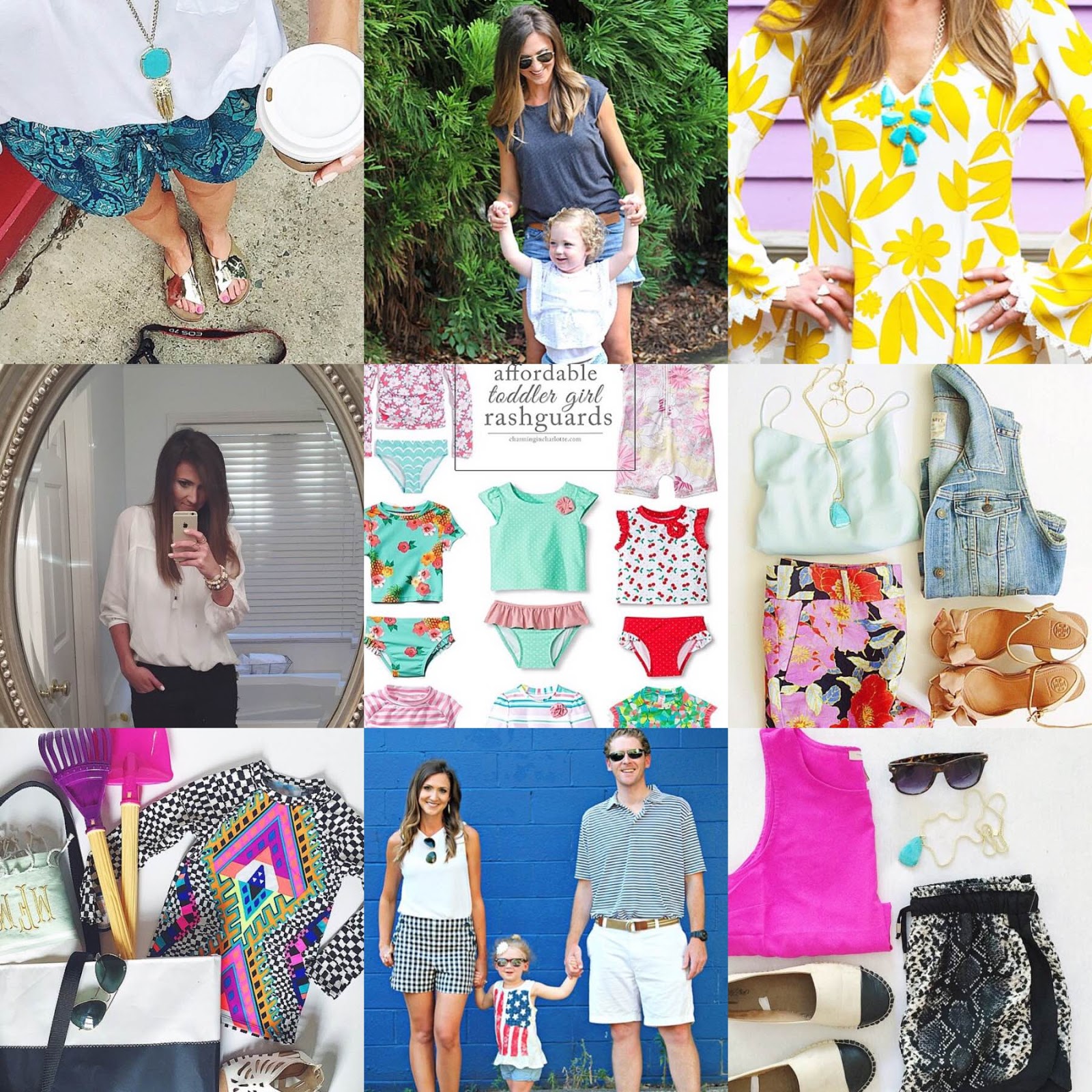Instagram Roundup // June: Part 1 July 3, 2015 | Can you guys believe that it’s already JULY?? There’s no way that 2015 is more than half way over! With Landry out of Mother’s Day Out and having no routine whatsoever, it feels like our days and weeks of summer are flying by. I recapped our June through the eyes of Instagram in two parts because there was so much going on. In case you missed anything or were wondering if anything we wore was still in stock, I included all of the information below… Love these drawstring shorts. The fit is easy and the print is just as just as the less than $20 price tag! Shorts // Top // Slides // Necklace // Camera This casual post showing off my favorite “Mom Uniform” for summer was one of the most popular posts this month. Laid back tee shirts, distressed shorts, and cool slides and I’m one happy (and comfortable) mama! JavaScript is currently disabled in this browser. Reactivate it to view this content. This amazing dress sold out literally right away (they’ve since restocked in size 8 only), so I linked to a super similar one that will give you the same look… Dress (similar) // Ring // Necklace Out to see Kenny Chesney in my favorite boho tassel top, boyfriend shorts, and lace up heels. Loved wearing this outfit! Shorts // Top This month I was on the hunt for affordable toddler rash guards to prepare for our beach trip. My girl simply cannot be exposed to the sun and rash guards are our only option….thank goodness I found some really cute ones! JavaScript is currently disabled in this browser. Reactivate it to view this content. It’s actually a little lot embarrassing how much I’ve worn these shorts. The fit is flattering and I cannot get enough of this floral print. I’ve found that I’ve also been able to pair them back to so many solid tops that are already in my closet! JavaScript is currently disabled in this browser. Reactivate it to view this content. While I’m schlepping it in my Target swimsuits, Landry Kate will be beaching it in style in this Mara Hoffman rash guard. Sigh. Lucky for you it’s on sale HALF OFF!! Also, this beach bag makes my heart so happy….pockets for days! JavaScript is currently disabled in this browser. Reactivate it to view this content. Fourth of July…family style! JavaScript is currently disabled in this browser. Reactivate it to view this content. Hot pink + Snakeskin + pops of turquoise…yes yes please! JavaScript is currently disabled in this browser. Reactivate it to view this content. I hope that you guys have a safe Holiday weekend! Things will be quiet around here for a few days, but you can always keep up with me on Instagram or Snapchat (@charmingincharlotte) and see what we’re doing in HHI!