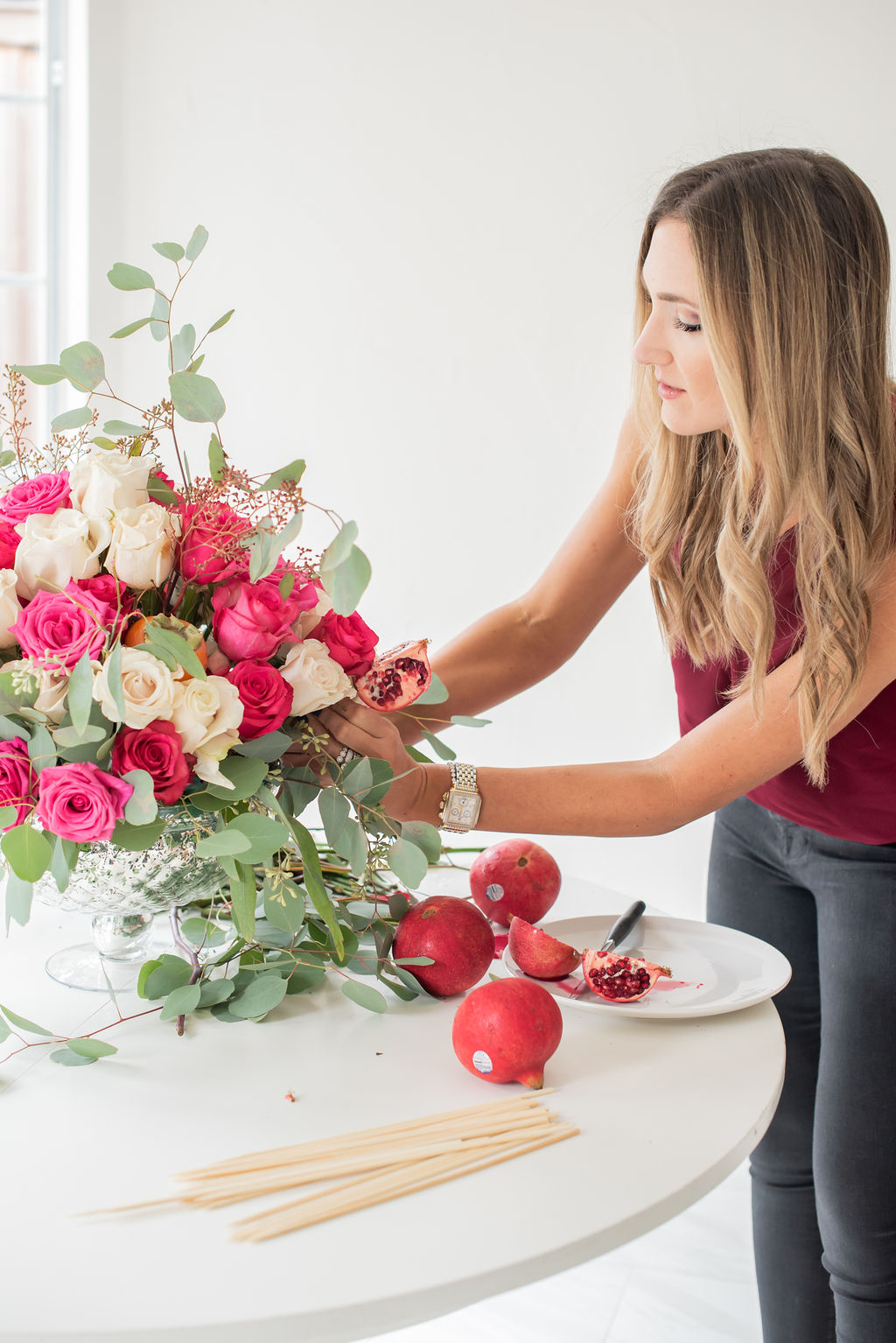 Joanna says November 15, 2018 at 12:57 PM Gorgeous centrepiece! The pomegranates really take it up a notch and are perfect for Thanksgiving. I love your little videos. It is so much easier to copy than just pictures, plus it’s fun to watch.