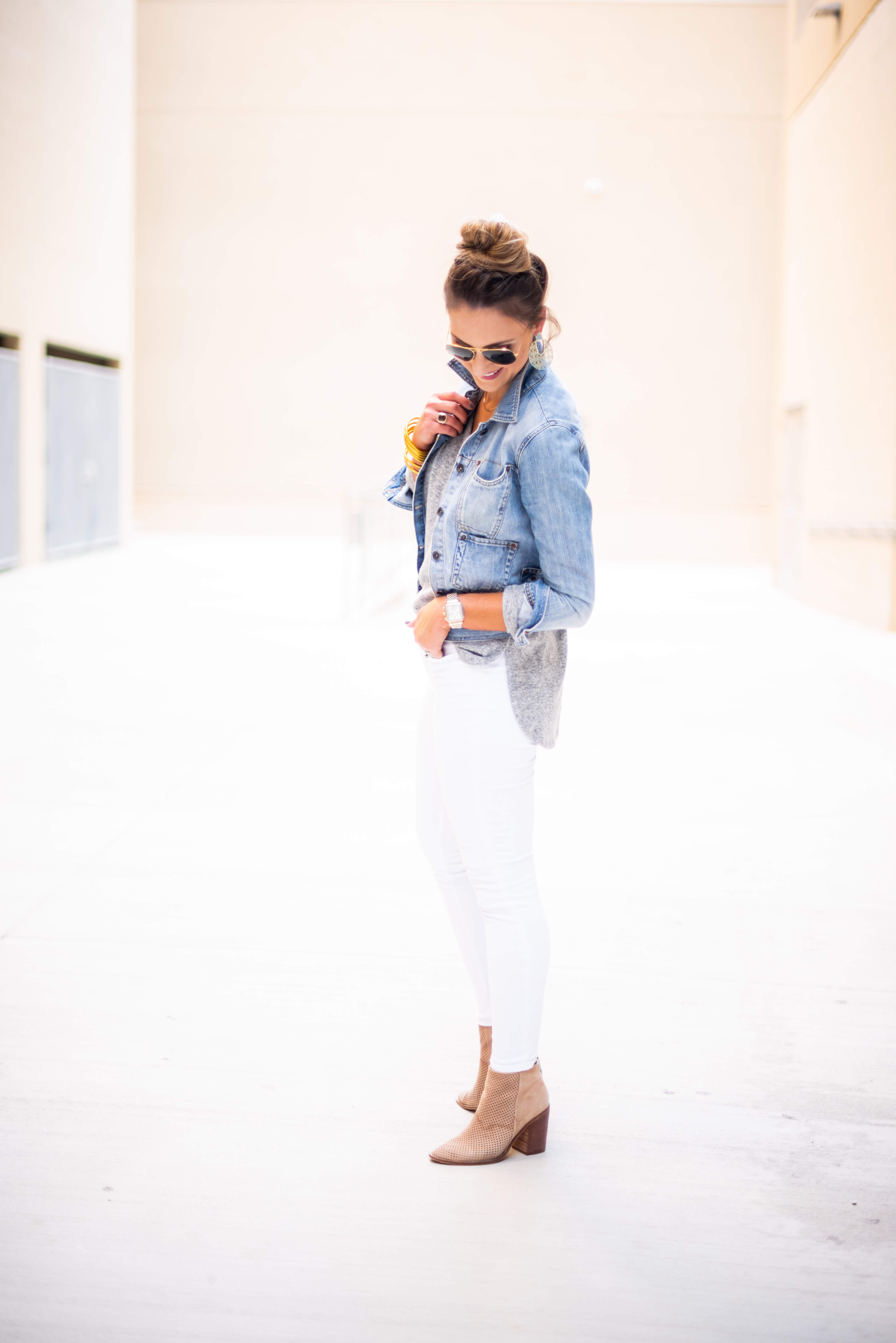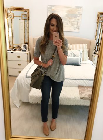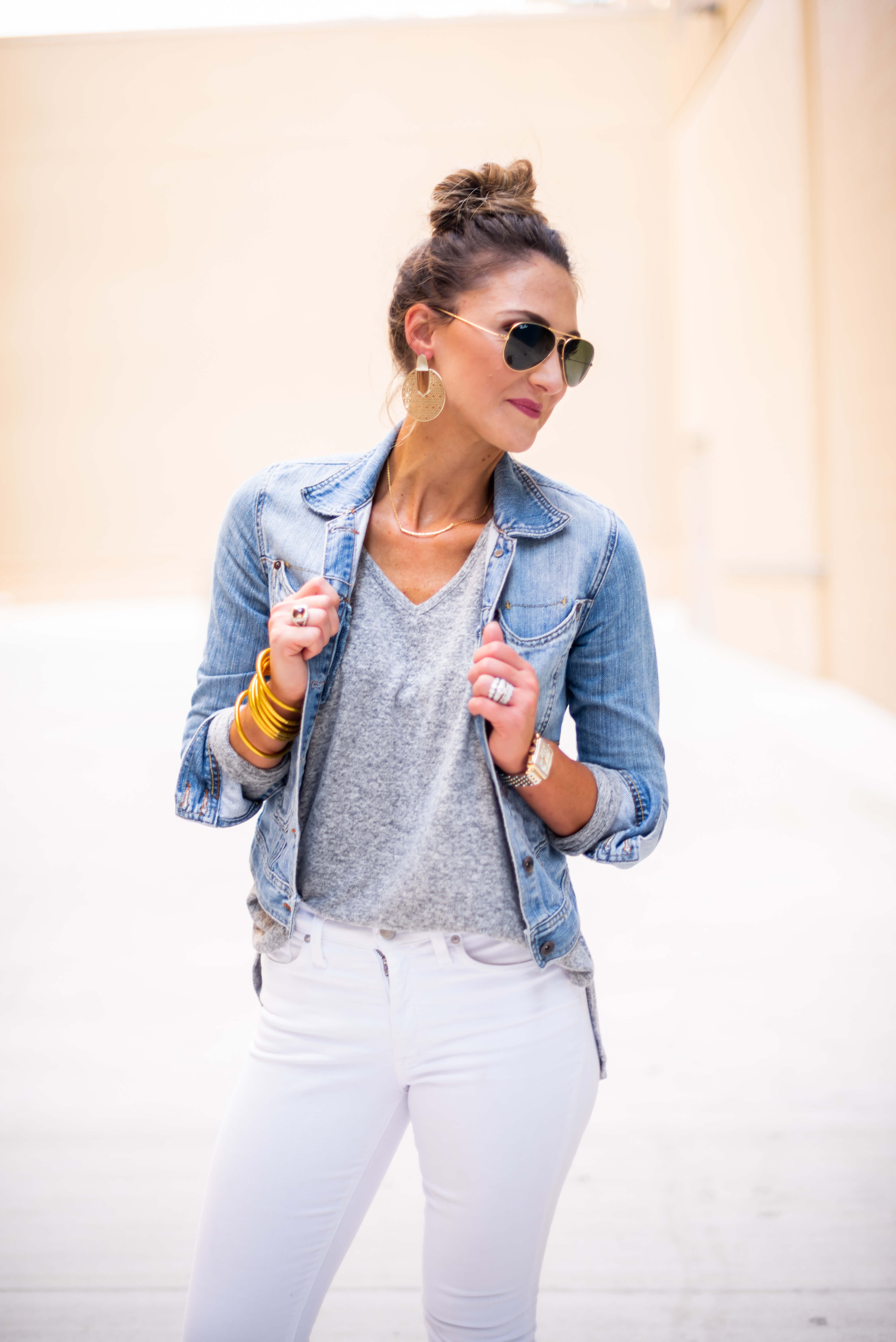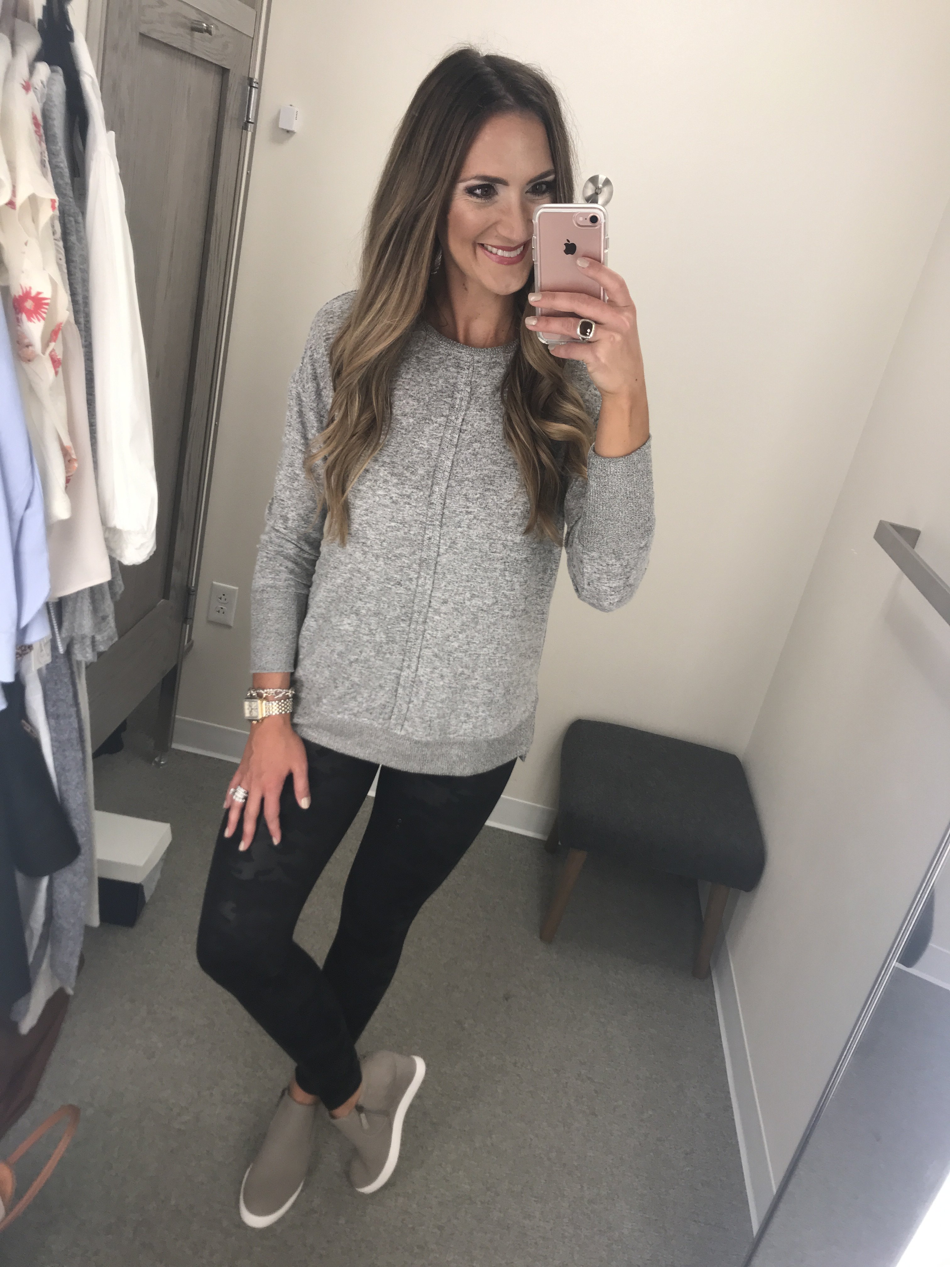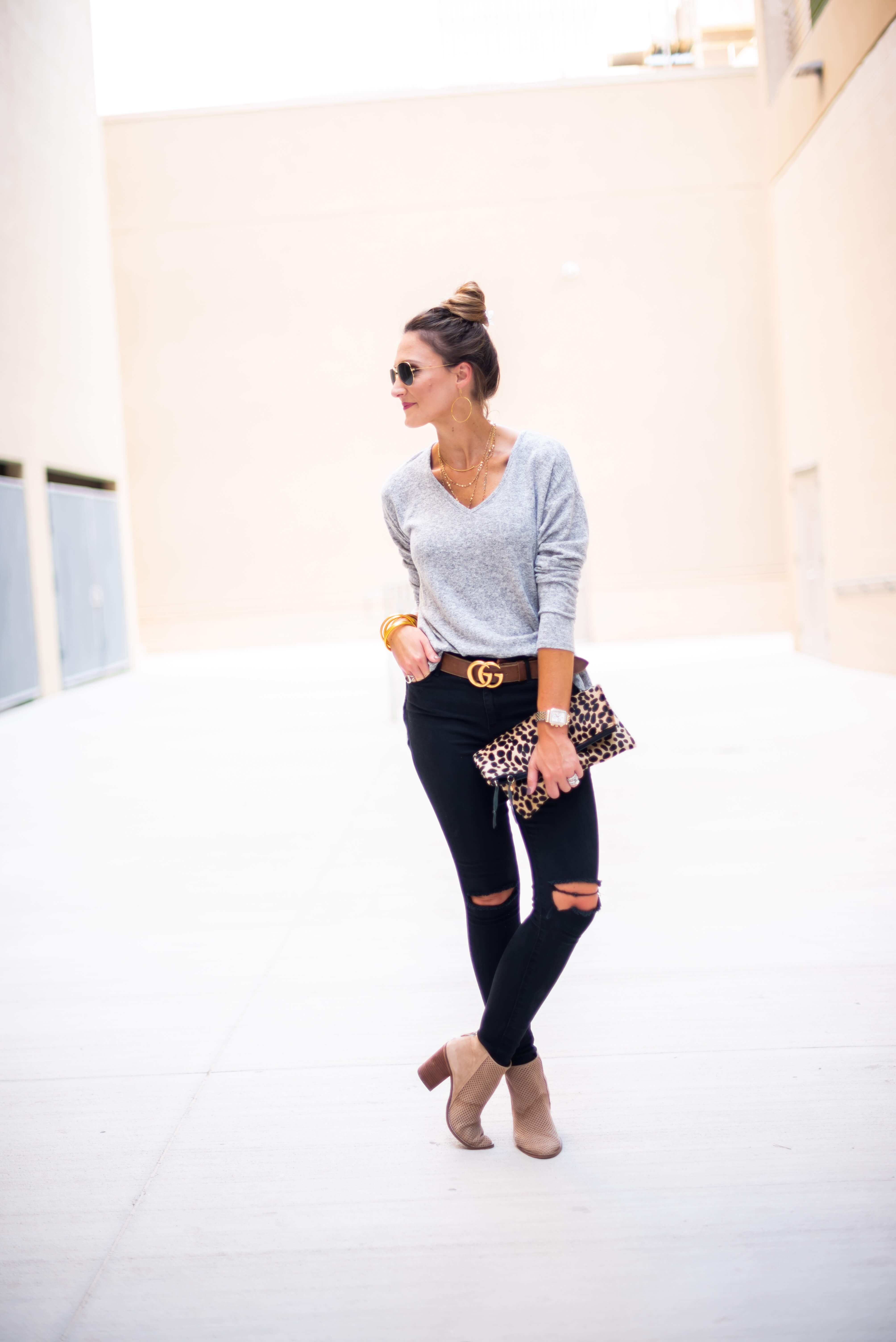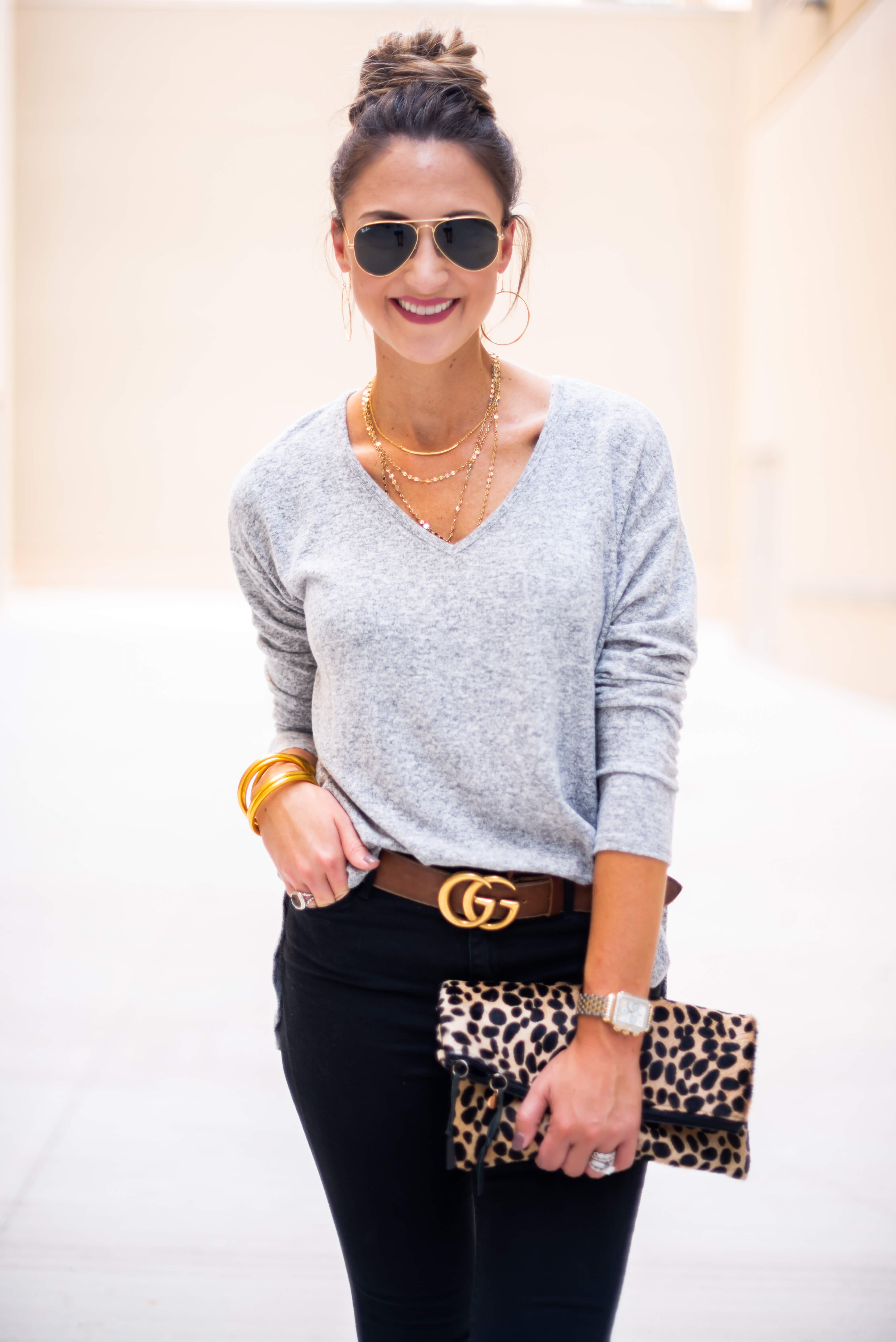 Cute Fall Sweater Styled Two Ways! September 28, 2018 | Ok ladies, when Nordstrom asked me to style this cute fall sweater for you guys, I knew exactly what I was going to write about. I’m going to preface this by saying, you KNOW a top has to be good for me to write an entire blog post about it! Today I’m sharing one of my favorite sweaters to date, styling it two ways, talking about the AMAZING fabric…oh and it’s under $50! First of all, y’all know I’m a huge fan of Gibson at Nordstrom (ahem, I’m collaborating with them to launch a Holiday line that comes out in November!!!), but part of the reason that I love them so much is because they make tops like this one. I put it on and immediately knew that it would be an absolute go-to in my closet. It’s the perfect fit (a little relaxed, covers the booty and the V Neck hits in the exact spot to make a mama feel confident), it comes in a ton of colors and it’s under $50! As if that wasn’t good enough, it’s made out of the most cozy, lightweight fleece material that’s breathable and buttery all at the same time…I’m serious when I say that it’s comfy enough to sleep in! It’s perfect for Fall transition, but easily layered under or over as the weather continues to cool. I’m confident saying that I see it as a piece that needs to be in EVERY one of your closets! Here’s how I styled it two ways so that you get a feel for just how much the denim + accessories can change up the look and take you from PTA to date night. Cute Fall Sweater Styled Two Ways: L: V Neck Cozy Fleece (under $50) | White Jeans | Similar Logo Tote | Denim Jacket | Bar Necklace | Sunnies | Earrings | Booties R: V Neck Cozy Fleece | SIMILAR Black Skinny Jeans | Logo Belt | Leopard Clutch | Layered Disc Necklaces | Booties | Lightweight Earrings Fit: I’m wearing a small here. As with everything Gibson, it runs a touch big but I liked the fit of the small on me. This is a great top to wear now with your white jeans (YES, you CAN wear white jeans through Fall) and pair back to a great neutral bootie. I also love that it’s lightweight enough to layer under a denim jacket… p.s. my favorite white jeans (the ones I’m wearing here) that sold out at the beginning of the Summer are now back in stock. #gofigure V Neck Cozy Fleece (under $50) | White Jeans | Similar Logo Tote | Denim Jacket | Bar Necklace | Sunnies | Earrings | Booties I truly love this look for Fall and wore this exact outfit the other day and got tons of compliments on it. Bright and cheery, but still weather appropriate. For this look, I swapped out the white jeans for a distressed pair of back skinnies and wow did it change the feel. With the belt, it makes the sweater feel a little more edgy and very versatile for a happy hour of casual date night. Not to mention, it’ll feel like you’re wearing your pajamas the entire time…so that’s a win 😉 V Neck Cozy Fleece | SIMILAR Black Skinny Jeans | Logo Belt | Leopard Clutch | Layered Disc Necklaces | Booties | Lightweight Earrings I added some more layered necklaces and a leopard clutch and I am totally ready for a crisp Fall evening on a patio somewhere… Do you see what I mean about the fit? It’s a little bit slouchy, but the kind of slouchy that makes you feel sexy. Does that even make any kind of sense? So happy because I really did find the best sweater! Trust me and buy at least one color of this cute fall sweater, you won’t be sorry! Need another reason to believe me as to why I’m a huge fan of this cozy fleece material??? Here are all of the pieces that I own and swear by in it. It’s truly life changing! L: Convertible Cowl Neck (ON SALE) R: Convertible Neckline Top (ON SALE) Knot Front Sweater (ended up buying this in grey AND blush!) / Wearing a Xsmall, runs big. Convertible Cardigan + Wrap Top (ON SALE) / Size down this is a Small Cozy Tunic (ON SALE!) / I’m wearing an XS, my mom wearing a M and you can see the difference in length This was such a fun post to share, I love finding pieces that I think nearly EVERY one of you would appreciate in your closets. If you have a piece of the cozy fleece, isn’t it amazing? Tell me in the comments! *Thank you to Nordstrom and ShopStyle for sponsoring this post. All opinions are my own and I really appreciate you supporting brands who believe in Style Your Senses! Loving this cute fall sweater feature? Take a look here for more of my fall/winter favorites!