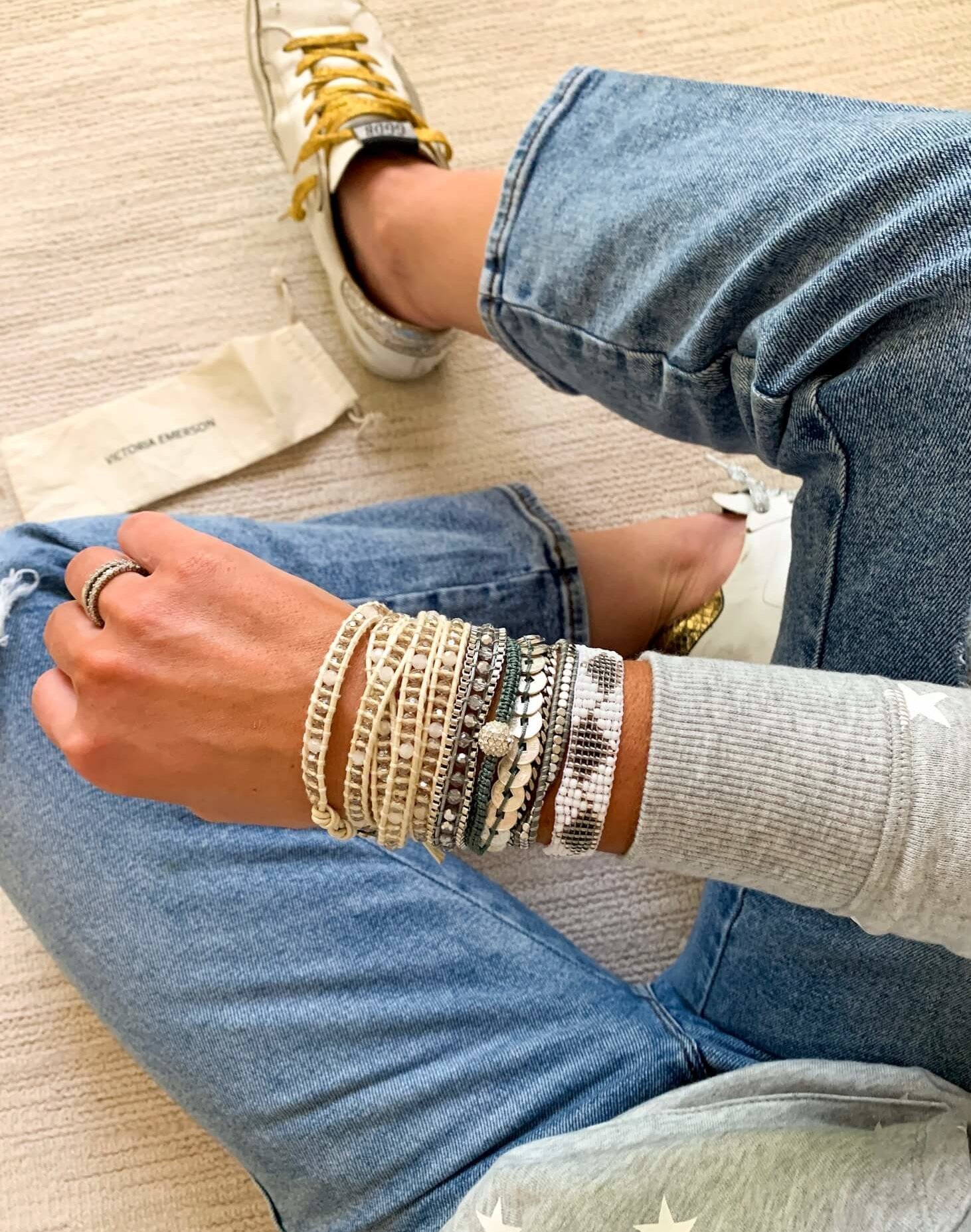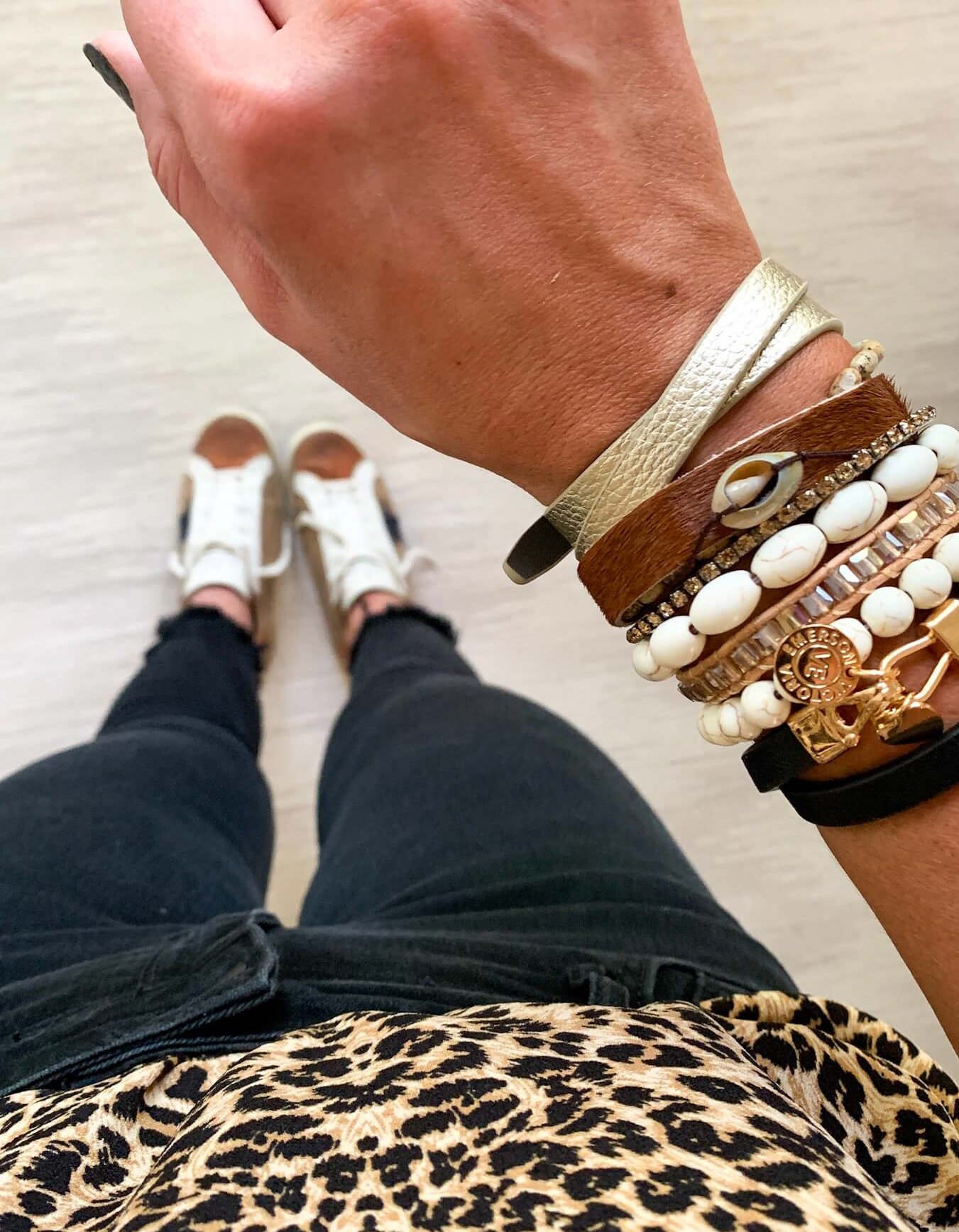 Victoria Emerson BOGO Sale October 10, 2019 | *This post is sponsored by Victoria Emerson and ShopStyle I’m super excited about today’s post because you guys know that I never shy away from a good wrist stack! Victoria Emerson has such an amazing selection of bracelets and wraps and lucky for you guys their entire site is BOGO (BUY ONE GET ONE FREE) through the weekend (no code needed)!!!! This is truly the time to stock up on on-trend gifts or update your Fall accessory game. What I love so much about Victoria Emerson pieces is that they are totally buildable and you are able to stack, layer and mix and match them effortlessly for a statement wrist that’s easy to achieve. I curated all of my favorites for you guys and showed you how I would mix and layer them—make sure to stock up because site wide sales like this don’t happen often! These layered wraps are a great place to start if you really appreciate an effortless accessorizing because they look like 5-7 layered bracelets but really are just one piece. Theres also a very good quality magnetic closure to make taking it on and off a breeze. I chose to feature these three colors because I think that they are all perfect for Fall—silver and grey hues, gold tones and browns. LEFT | MIDDLE | RIGHT Starting with this silver stack and paired it with one of my favorite prints of the season, stars! I love how it mixes beading, metals and a dainty crystal touch! Totally a beautiful statement when worn alone, but keep scrolling to see how I layered it. Silver Tones Layered Bracelet This beaded wrap is GREAT for layering or wearing alone (I’m currently wearing it as I type). It’s a great neutral addition to any stack and a great place to start. Ivory Wrap | Silver Tones Layered Bracelet I chose to pair this gold toned stack with camo (another fav print) and love how it stands out but still works as a neutral to pair with a print. It’s made of the same pieces (just in different tones) as the one above, which is why I was drawn to it. To me, this stack is the perfect mix of feminine and boho. Gold Tones Layered Bracelet Since it’s such a good neutral, I layered on either side of this one and while it’s definitely a statement, it wasn’t overpowering. I absolutely adore this stack and got SO many compliments on it—I’m talking random strangers at the park taking note. I layered the same ivory neutral wrap on top then a lightweight gold leather wrap on bottom. The mix of tones and textures it what my Fall dreams are made of! Ivory Wrap | Gold Tones Layered Bracelet |Leather Wrap Next up I paired the beautiful brown stack with leopard print and other brown tones. This one feels a little more boho, which can be dressed up a little (with leopard print) or dressed down with a cool fringe sweater. Brown Tones Wrap Bracelet This is probably me favorite layered look with the leather wraps on either side. The gold one on the top and the black one towards the bottom. Both are such great quality, have multiple holes to fit any wrists and are easy to layer with. Leather Wrap | Black Leather Wrap | Brown Tones Wrap Bracelet Shop all of my Victoria Emerson favorites below: Remember that their entire site is BOGO50% OFF through the weekend!