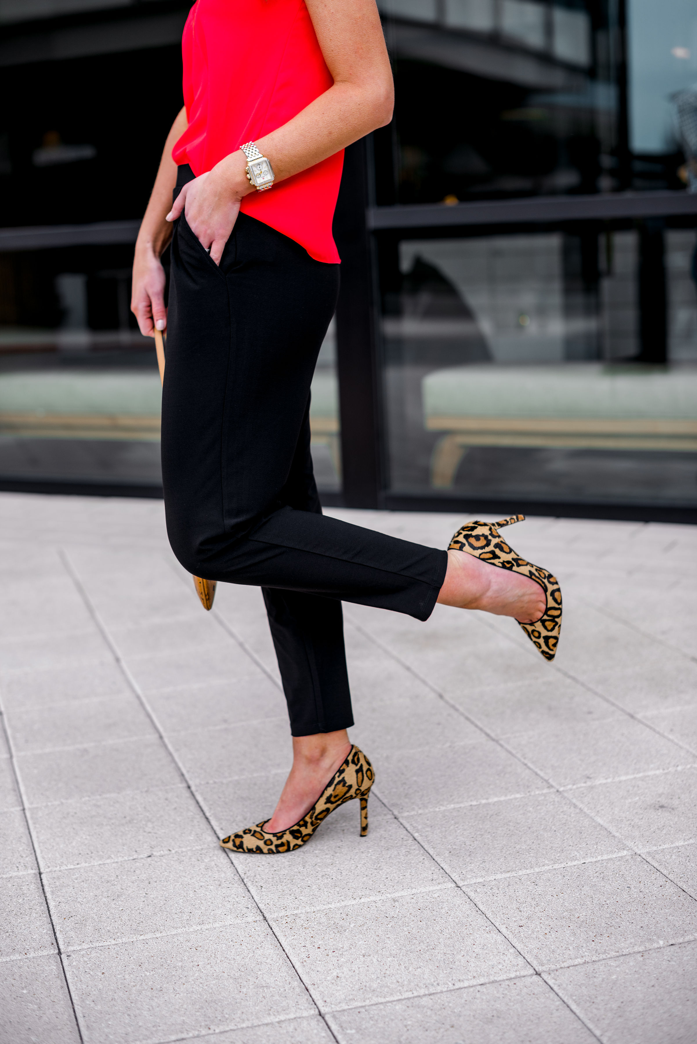 Workwear Staples from Day to Night February 14, 2019 | Hi Friends! Happy Valentine’s Day! Today I’m coming to you with a work to weekend post with some workwear staples that I just love. This topic seems to be what you’d really like to see more of styled on the blog and I thought that this was a great way to start. I found THESE PANTS and they truly wow-ed me. I love the silhouette and the fit and how easy they are to wear. Traditionally they look like more of a workwear pant, but the more I kept playing around with them, the more that I found the silhouette appropriate for after 5! They almost fit like a tailored jogger pant (which you know I LOVE for weekends), but they are still tailored in all of the right places. Not to mention, they get great reviews, come in extended sizes, come in quite a few other colors and are a FAB price—these are a real winner! See how I styled them from work to weekend below! Left: Lilac Top (S) | Black Pants (S) | Black Heels | Sunnies | Tote Bag Right: Red Lace Cami (great price!) | Black Pants (S)| Leopard Heels | Layered Necklaces | Sunnies | Clutch For the workwear look, I paired a modest satin blouse (on sale!) with the pants and it’s fun but still polished. The necklace in appropriate and you can easily wear a regular bra with it. I know sleeveless is fine in most workplaces these days, but if not this outfit is totally conducive to throwing a cardigan or blazer over too. The flexibility also makes it a great transitional look. Lilac Top | Black Pants | Black Heels | Sunnies | Tote Bag My favorite Christmas gift was hands down this tote bag. I’m loving the size and the color and really like that it feels different from other designer tote bags. It’s been a great work + mom bag for me and I love that it came with a clutch inside of it, too—which you can see how I styled it below! Although not a traditional after 5pm silhouette, I really do love the look of these pants paired with a beautiful cami, jewelry and fun heels. They give off a laid back, cool feel and I love how that pairs with a girly cami + accessories. Camis can be hard—either they are too sexy or look a little cheap. This one if a great option and is just the right amount of sexy + sophisticated, and also GREAT quality for the price (under $40)! It comes in quite a few colors too and could easily work as your “go-to” date night top! Red Lace Cami (great price!) | Black Pants | Leopard Heels | Layered Necklaces | Sunnies | Clutch Accessories are so key when spicing up an outfit that has very little pattern. This delicate layered necklace is always the one that I reach for when wearing a cami. It reflects the light well and gives off a little sparkle, in a very non-rhinestone way 😉 Like I mentioned, I love my MCM tote because it came with a clutch inside of it. Not only is it well made but gah it’s been so useful. When thinking through an investment bag and comparing this one to a Louis Vuitton tote, here’s the breakdown. Mine is the same size as the Neverfull GM which costs $1400, and the MCM one is $795. It also came with a clutch at no extra charge and the LV clutch that’s the same size is $525. So the investment overall is around $2,000 vs $795! Whether you wear business casual in the workplace or are just looking for an all around great go-to pair of black pants, I hope that this post gave you some inspiration to think outside of the box when it comes to silhouettes and styles. Would love your feedback below on these types of posts! Happy V Day!