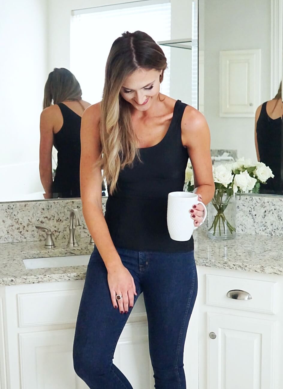 Yummie Tummie Tank Review October 18, 2018 | Ok gals, I have a post that I’m really excited about today! I am always soooo happy when I find a product that I think probably 99% of us women can wear and find helpful, and today I’m sharing a brand new find! Yummie just launched their new 6-in-1 Shaping Yummie Tummie Tank with patent pending technology and they asked me to give it a spin and share my thoughts. Let’s just say, it blew me away and I had NO idea that shape wear was so advanced! Curious how one top is really 5 tops??? Keep reading… After babies, my midsection really isn’t what it used to be (and that’s OK!), but it’s definitely something that I am more self conscious of now. My abs are still separated quite a bit and there are some lumps in places that I would rather be smooth, so this tank came right at the perfect time! It doesn’t slide up, is made of a lightweight breathable fabric and really does a crazy good job of shaping and smoothing your mid-section, specific to what YOUR problem areas are and also what you’re wearing. Sounds too good to be true, right?! The 6-1 Shaping Yummie Tummie Tank | How it Works The patent pending technology includes two compression panels sewn into the tank. Wear the panels doubled up on whichever side (front or back) that you’d like more shape on. I have both panels worn in the back here, because my main concern is the love handle area. If you want to flatten your mom pooch, switch to wearing both panels towards the front and you’ll have a flat tummy in a heartbeat. If you want an ALL AROUND smooth shape, simply wear one panel on each side. Isn’t that amazing?? See this graphic for more info! It’s also completely reversible and offers two different necklines, so depending on what you’re wearing over it, you can opt for a scoop neck or a v neck to accommodate. Pure genius, right!?! You can see the V neck in the reflection of my mirror, to give you an idea. I mentioned this before, but the no slip grip strip (that’s a mouthful) really doesn’t allow the tank to ride up and that’s such a great feeling. It’s always the worst to be tugging at your base layer and that absolutely won’t happen with this tank. All of that and it’s not uncomfortable. Yes, it’s shape wear so it’s more fitted, but it still offers you the flexibility to move freely and feel confident and comfortable during your day. The material is silky smooth and so breathable, so you’re able to wear it year around. I often get asked about base layers and I can say with confidence that I HIGHLY recommend the 6-in-1 Shaping Yummie Tummie Tank not only for the shaping that it offers, but for the functionality of a go-to layering tank. Every gal needs one in white and black, in my opinion! I’m wearing the small here and I liked the fit. I’m typically a small on top, so I would say that it runs TTS. Here are some other great options from Yummie, too! If you are nursing, THIS TANK will save your life and get you to feeling back to yourself in a heartbeat. It has a shaping panel around the middle to smooth your mid section and encourage those muscles to shift back into place AND it has nursing panel. This is such a great solution! It’s also ON MAJOR SALE! See all Shape wear HERE | See all Leggings HERE | See all Bodysuits HERE | Did you know they also have BRAS?! Thank you guys for joining me today! It was so much fun learning about a new product that I think you all would love too. Thank you to Yummie + ShopStyle for sponsoring this post and as always I really appreciate you supporting brands who support Style Your Senses! Loving this Yummie Tummie Tank review? Take a look here for more of my beauty favorites!